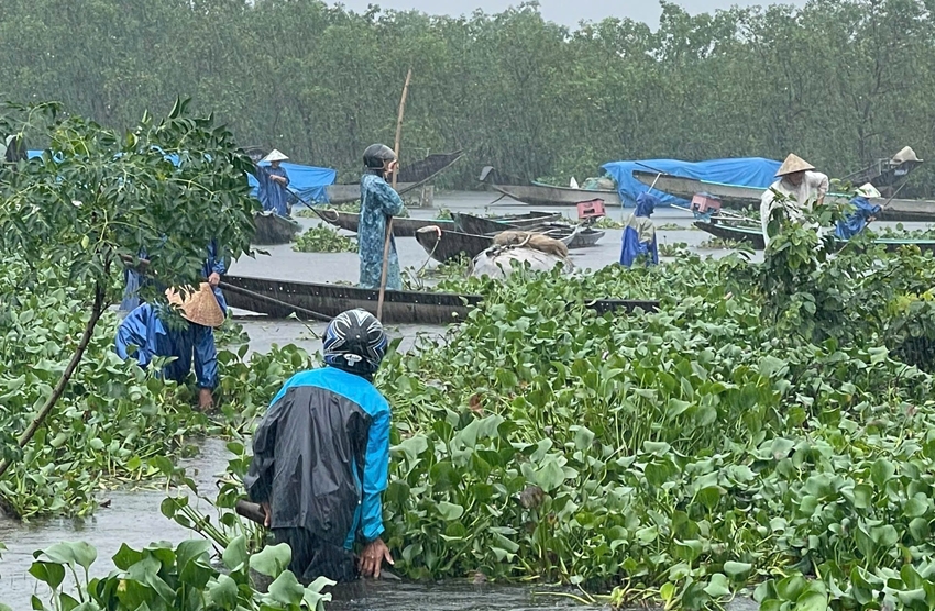 Cùng với lực lượng chức năng, người dân nhiều nơi đã chủ động ứng phó. Tại làng Ngư Mỹ Thạnh, xã Đan Điền, người dân đã trục vớt bèo lục bình dạt về, khơi thông dòng chảy. Những hình ảnh đó cho thấy tinh thần đoàn kết, chủ động, trách nhiệm của chính quyền và Nhân dân trong ứng phó thiên tai.