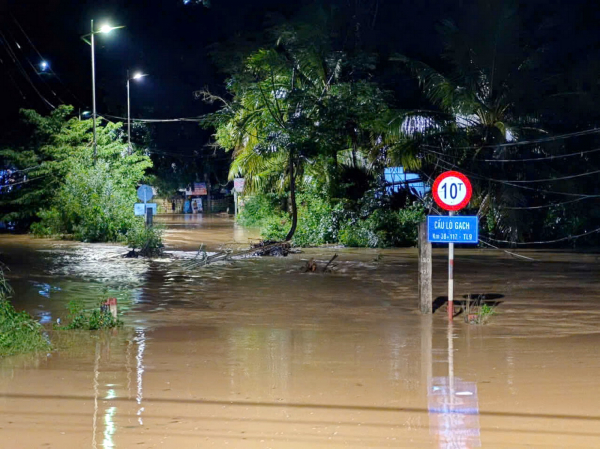 Bà Cao Thị Ngọc Thanh, Chủ tịch UBND xã Trung Khánh Vĩnh cho biết, mưa lớn, mực nước từ các dòng suối trên địa bàn xã này dâng cao, nên cầu tràn Ba Cẳng trên tuyến đường lên Thủy điện Sông Chò đã bị ngập nước, dòng chảy xiết rất nguy hiểm, nên chính quyền địa phương đã phân công nhân lực chốt chặn hai đầu không cho người và các loại phương tiện qua lại. Mưa lớn cũng đã gây ngập một số tuyến đường ở xã Cam Lâm, phường Bắc Cam Ranh.