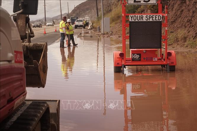 Tuyến đường bị ngập sau những trận mưa lớn tại Los Angeles, California, Mỹ. Ảnh tư liệu: THX/TTXVN