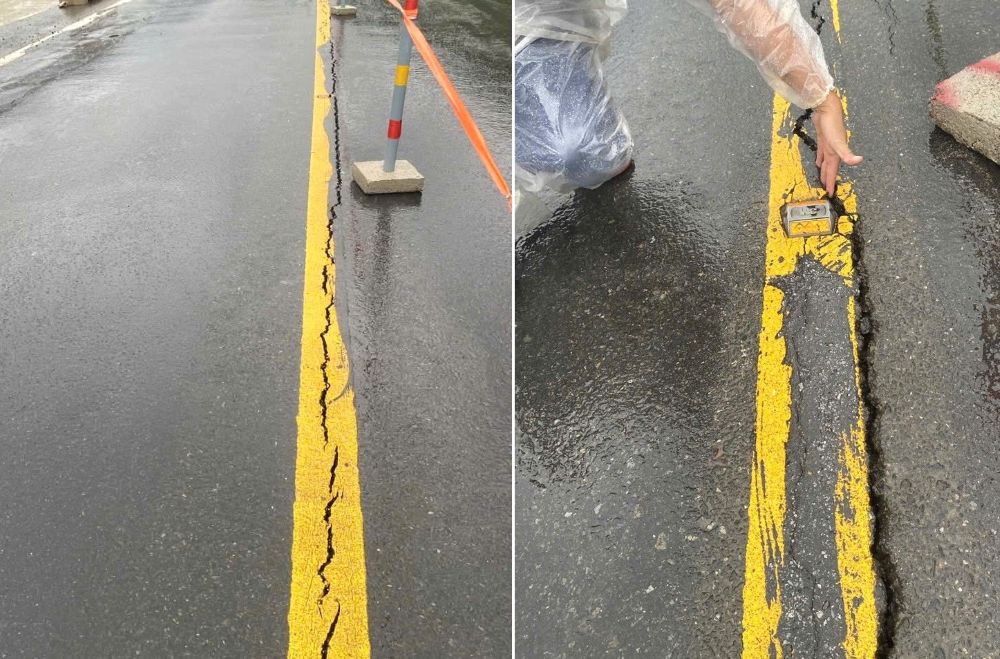 Vết nứt này được xác định do nền đường phía dưới (trùng với tuyến đường ĐT601) bị xói lở sau khi hứng chịu đợt mưa to, kéo dài đang diễn ra.