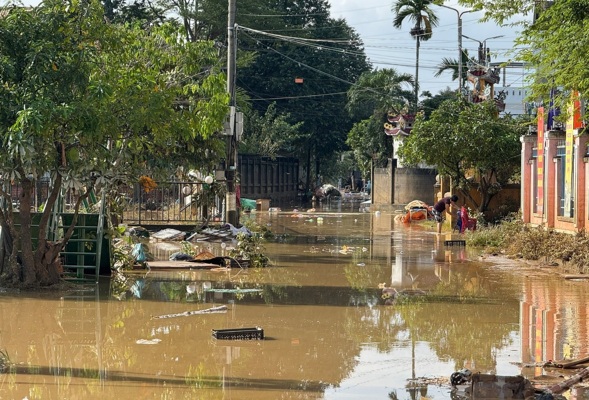 Khu dân cư Đại Lộc, Nam Phước, thành phố Đà Nẵng vẫn còn bị ngập. Ảnh Báo Nông nghiệp và Môi trường