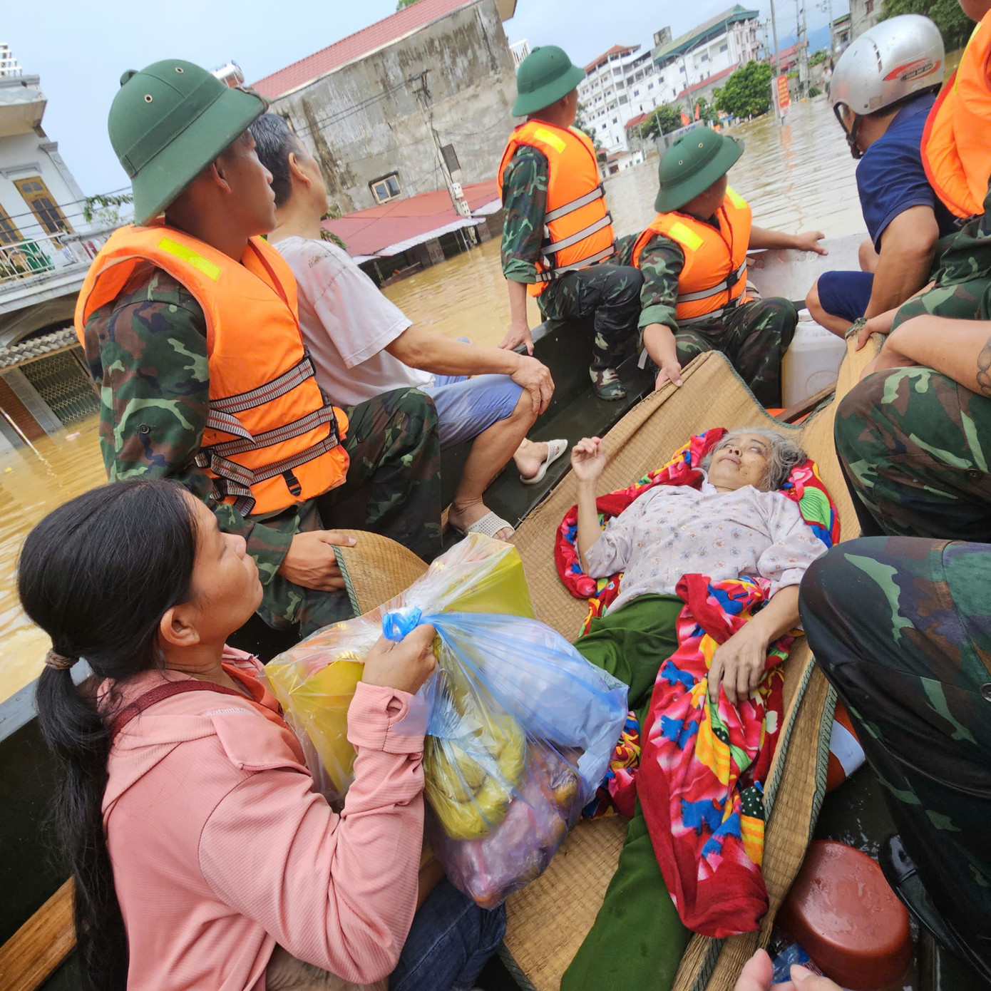 Lực lượng vũ trang hỗ trợ người dân vùng lũ.