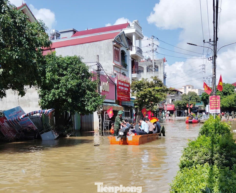 Lực lượng chức năng tỉnh Lạng Sơn nỗ lực cứu giúp người dân thoát khỏi vùng nước lũ. Ảnh: Dương Nguyên