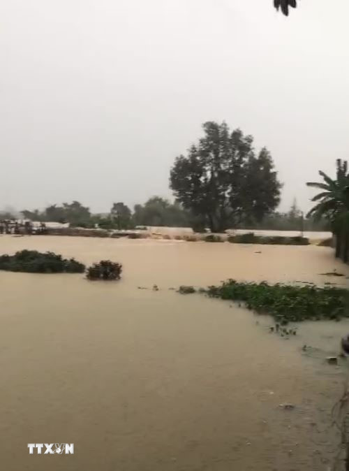 Nước lũ dâng cao làm vỡ đê bối sông Cầu tại tổ 33, phường Phan Đình Phùng, tỉnh Thái Nguyên. (Ảnh: Thảo Nguyên/TTXVN)