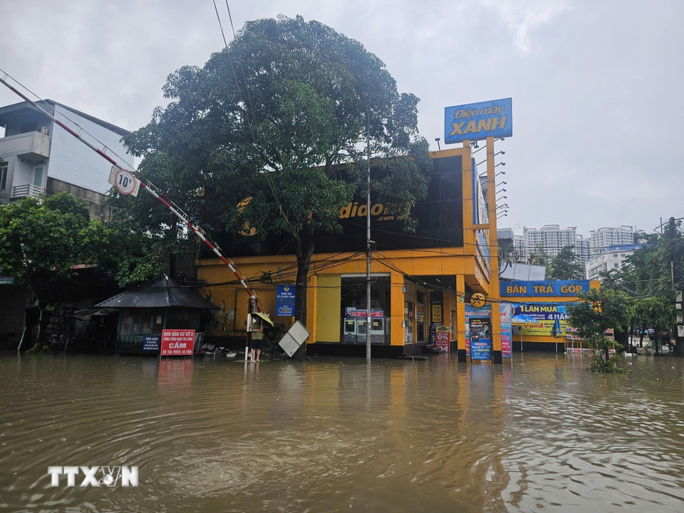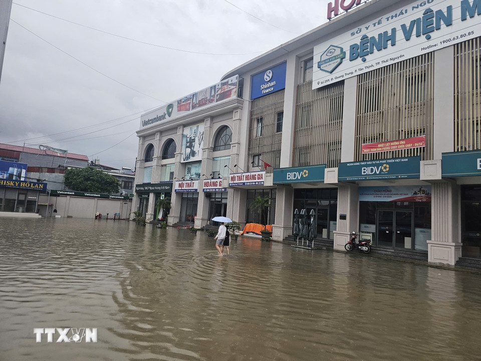 Nước ngập tại Đường Quang Trung, phường Phan Đình Phùng, tỉnh Thái Nguyên.(Ảnh: Thảo Nguyên/TTXVN)