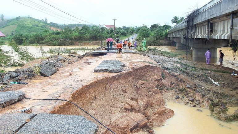 Mưa lũ khiến nhiều tuyến giao thông ở xã Yang Mao bị sạt lở, chia cắt.