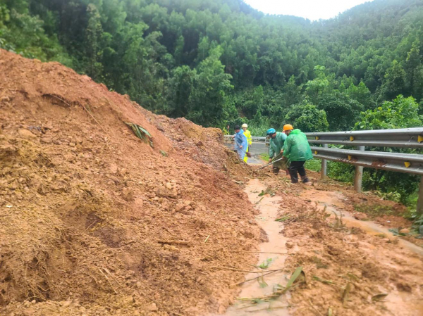 Lực lượng chức năng đang nỗ lực khắc phục các điểm sạt lở để sớm thông đường.