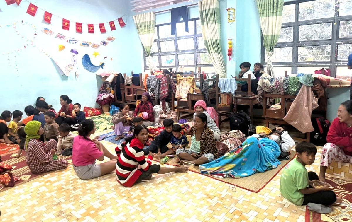 Người dân xã Uar, tỉnh Gia Lai tại nơi trú tránh lũ. Ảnh Báo Nông nghiệp và Môi trường