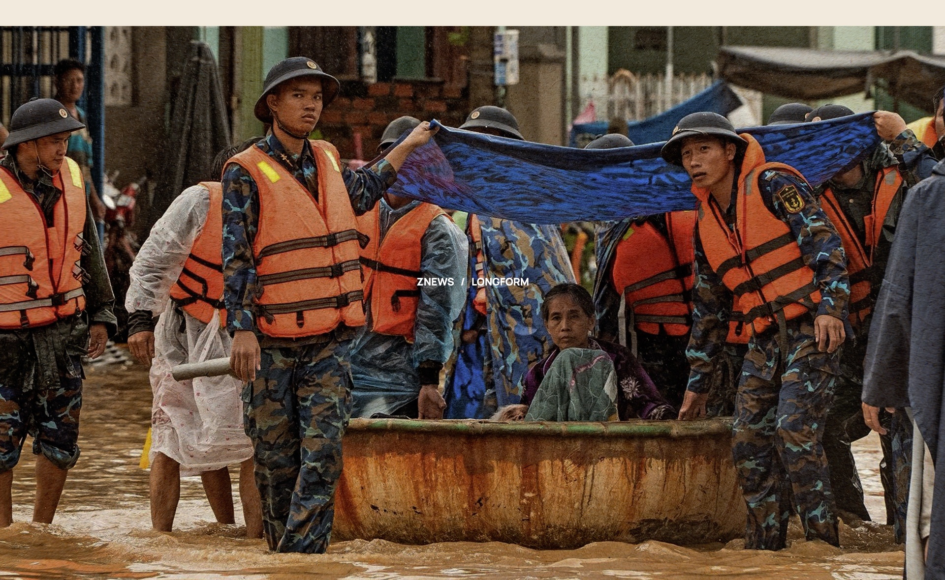 "Khi đến từng nhà, tôi không kịp hỏi tên từng người được bế xuống thuyền, chỉ thấy đôi mắt sợ hãi lẫn hạnh phúc, cùng đôi bàn tay run lẩy bẩy vì ngấm nước lạnh", Long Nhật nói.