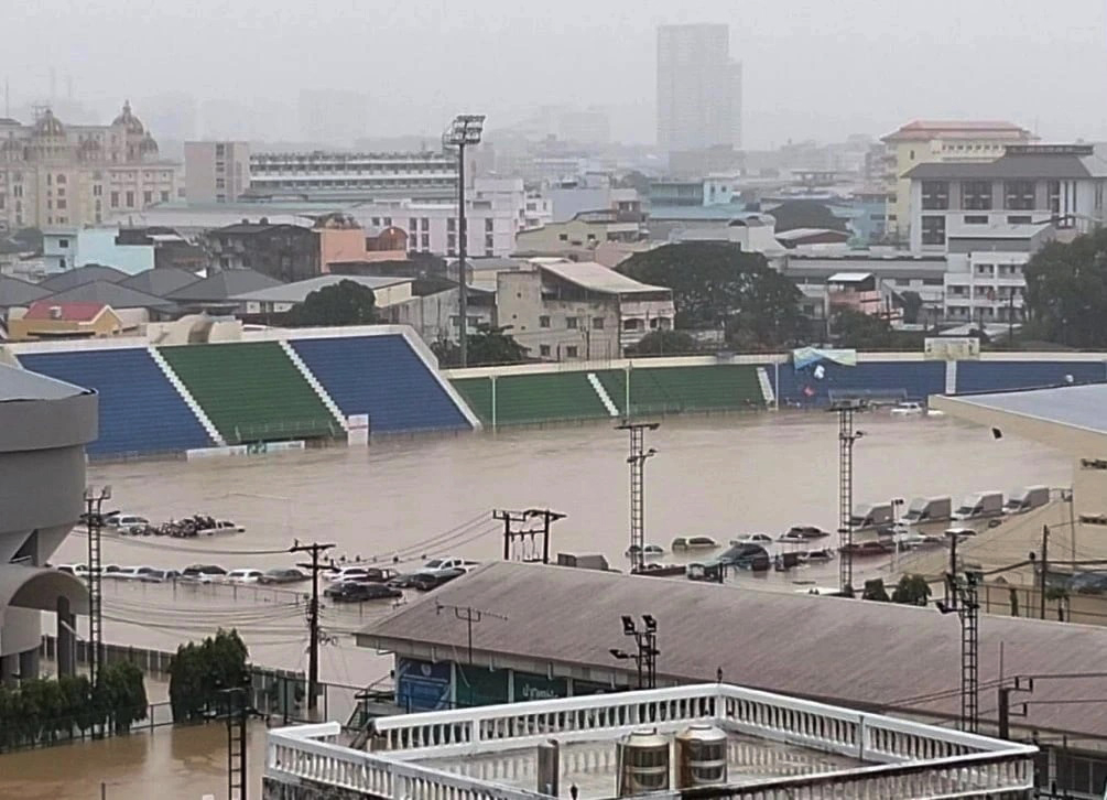 Sân vân động Jitanakron ở tỉnh Songkhla ngập nặng. Ảnh: Astro
