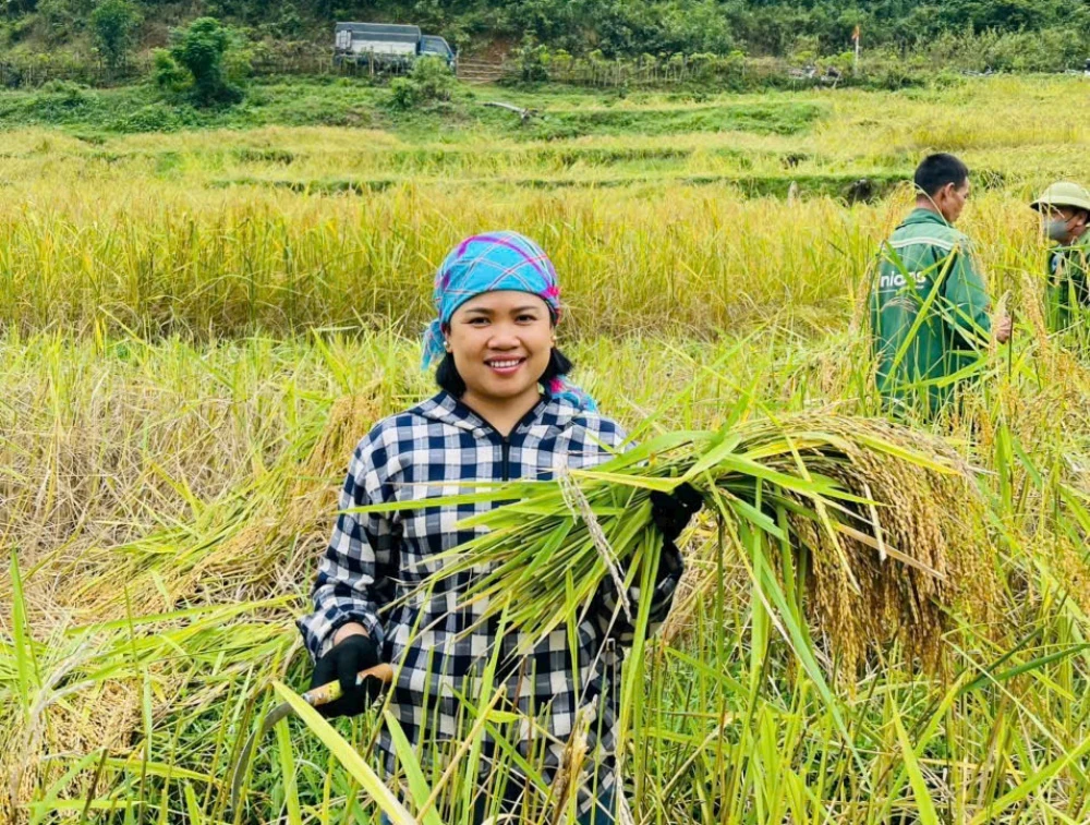 Năm nay, điều kiện chăm sóc tốt hơn nên các thửa ruộng năng suất lúa đều cao hơn các năm trước. Cách thu hoạch lúa của người dân nơi đây cũng khá đặc biệt bởi họ không vội vàng, mỗi ngày thu hoạch một khoảnh ruộng cho đến khi gặt hết. Thời gian thu hoạch vì thế có thể kéo dài khoảng nửa tháng. Các khâu thu hoạch hoàn toàn thủ công từ cắt lúa đến sàng sảy ngay tại ruộng loại bỏ hạt lép, chỉ lấy những hạt lúa chắc để đóng vào bao. Rơm rạ cũng được phơi luôn ngoài đồng. Thường là việc cắt lúa, sàng sảy là của phụ nữ. Những người đàn ông sẽ đi xe máy đến bờ ruộng chở bao lúa về phơi trên đường làng hoặc sân nhà. Sau khi thu hoạch, bà con sẽ giữ lại một phần để dùng trong bữa ăn thường ngày của gia đình hoặc sử dụng trong các dịp lễ, tết, còn lại được bán cho thương lái.