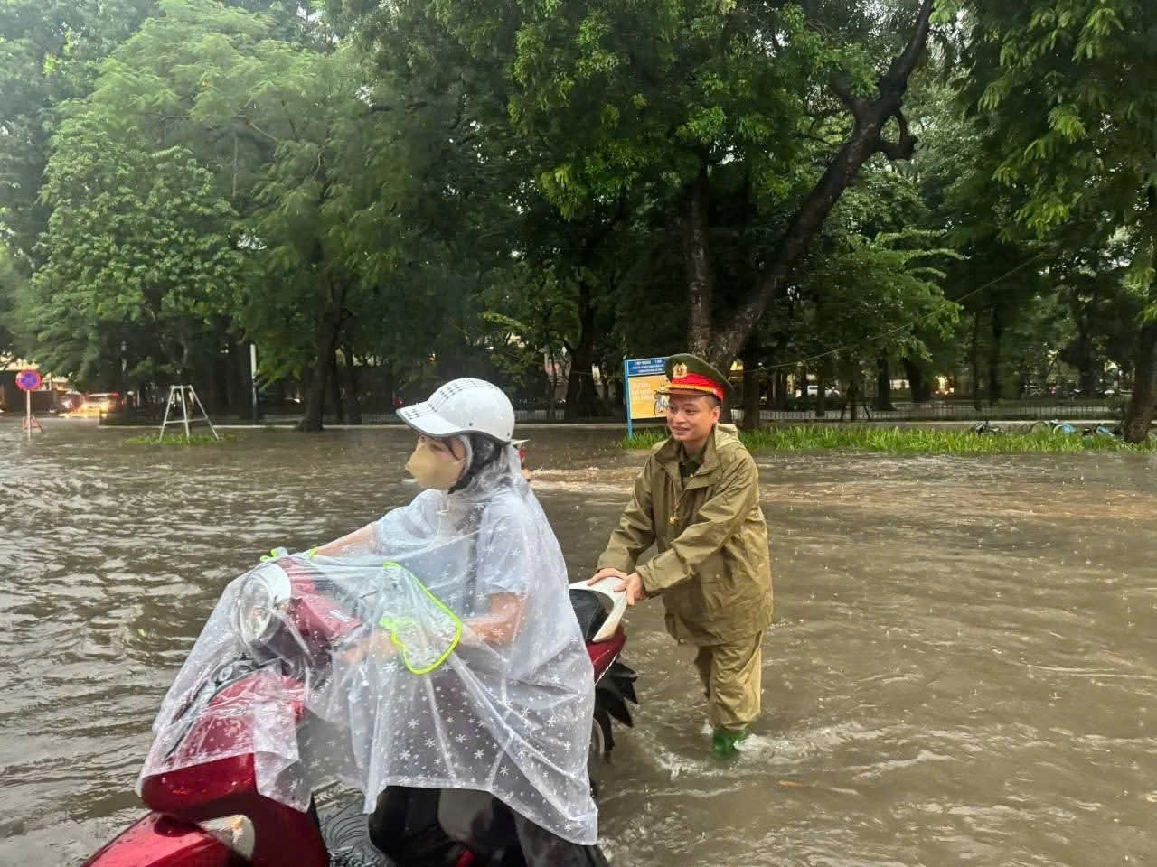 Ngày 30-9, cơn mưa trút xuống đúng giờ cao điểm (khoảng 8h) đã khiến hệ thống giao thông bị rối loạn. Ngay trong cơn mưa, hàng trăm cán bộ, chiến sĩ Bộ Tư lệnh Thủ đô, Công an thành phố đã xuống đường vừa điều tiết, hướng dẫn phân luồng giao thông, vừa hỗ trợ người dân đi qua khu vực ngập nặng. Lãnh đạo UBND thành phố, các sở, ngành cùng các phường, xã đã có mặt ngay ở địa bàn để kiểm tra, chỉ đạo xử lý tiêu thoát nước và hỗ trợ người dân.