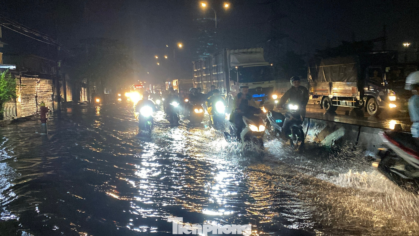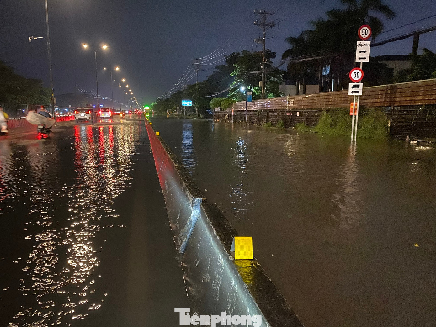 Cùng thời điểm, ở các tuyến đường khác như quốc lộ 1, Hồ Học Lãm, Lê Cơ,... nước cũng dâng cao, khiến việc lưu thông gặp nhiều khó khăn. Các phương tiện buộc phải di chuyển chậm qua khu vực.