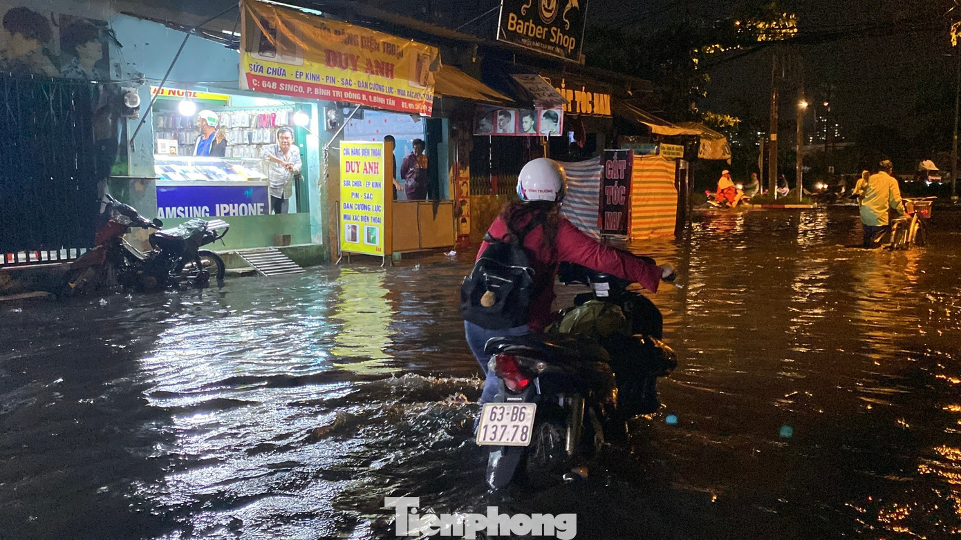 Theo ghi nhận, khu vực phía tây thành phố như đường SINCO, Hồ Học Lãm, Lê Cơ, đường Lê Đức Anh - quốc lộ 1 (đoạn qua phường An Lạc và Tân Tạo) ngập sâu, nước dâng cao gần nửa bánh xe máy. Nhiều phương tiện di chuyển qua khu vực này bị chết máy, người dân phải dắt bộ, bì bõm lội nước giữa dòng xe nối dài.