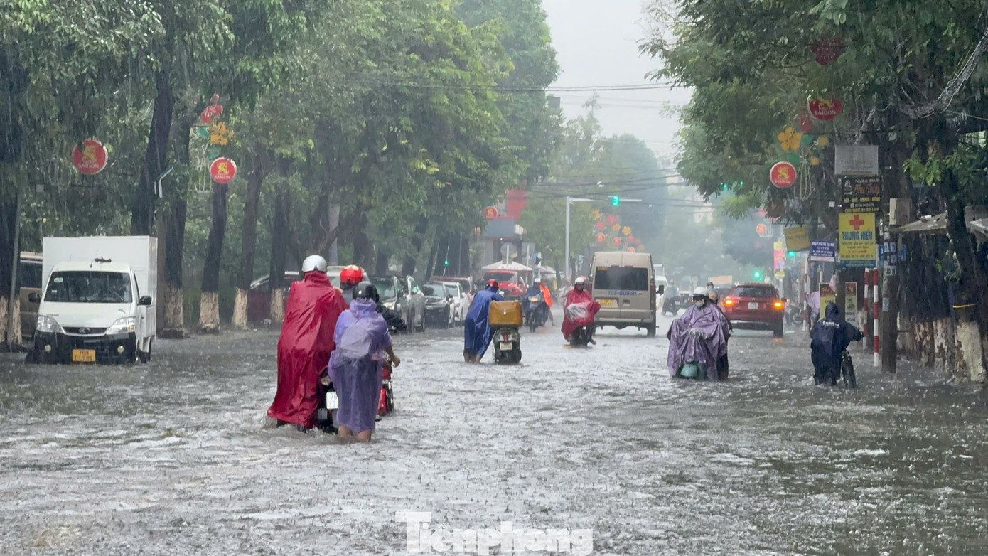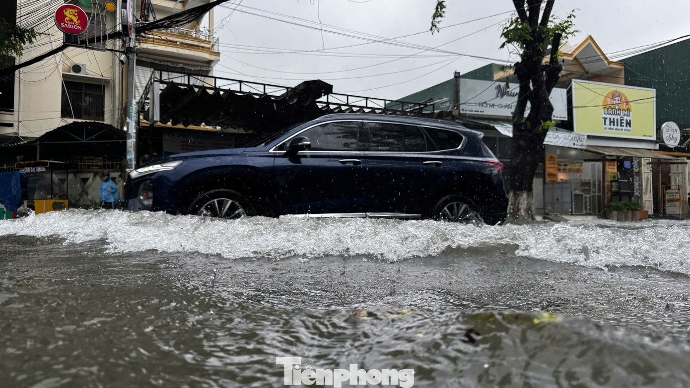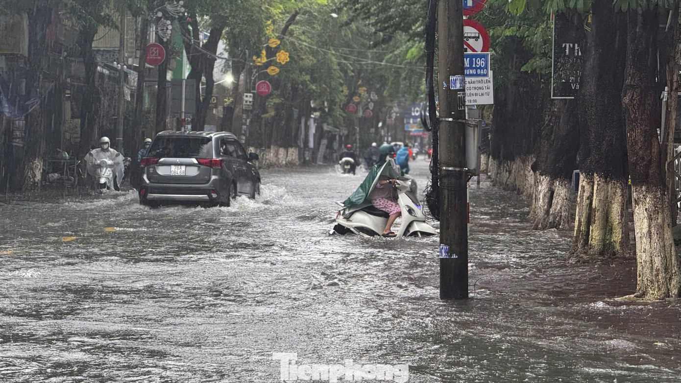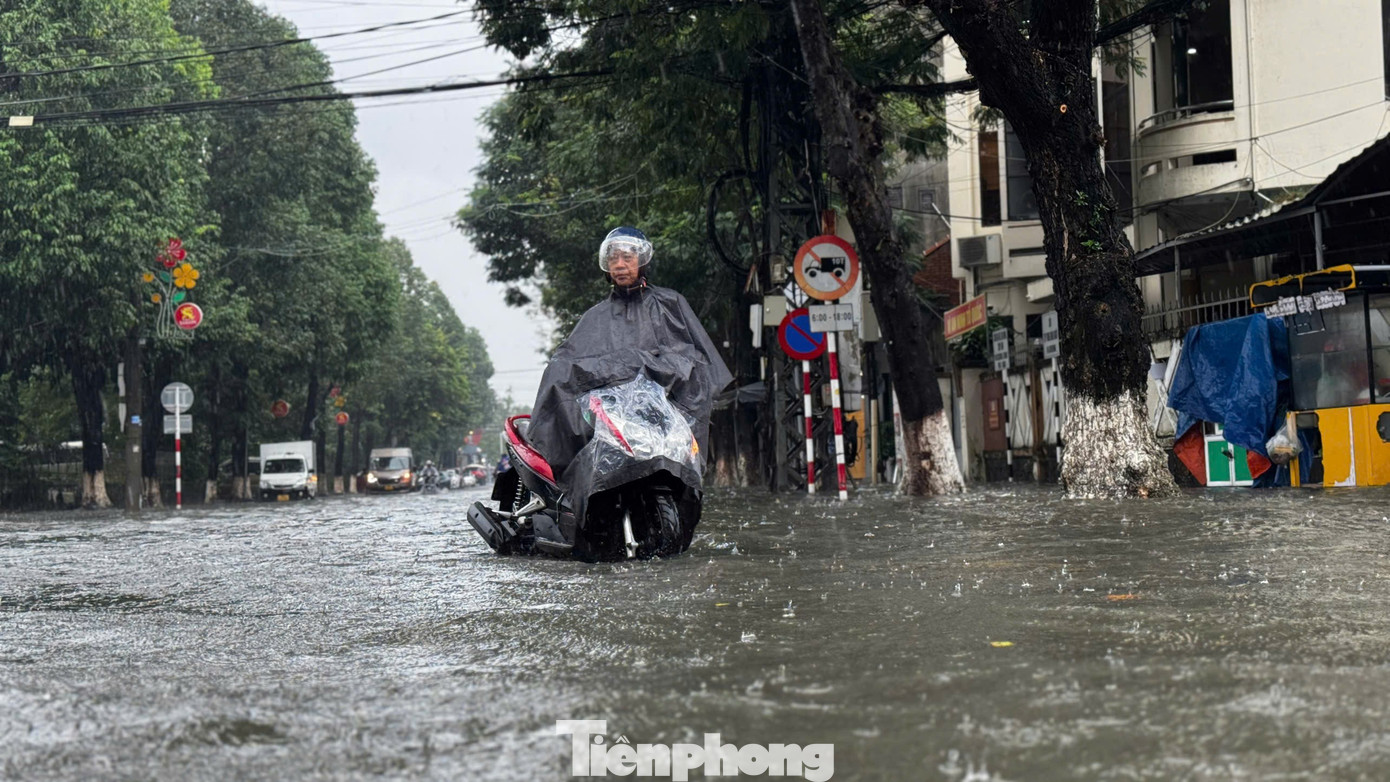 Tuyến đường Phan Bội Châu giao với Trần Hưng Đạo nhiều đoạn nước ngập sâu lút đầu gối. Nhiều phương tiện bị chết máy giữa đường.