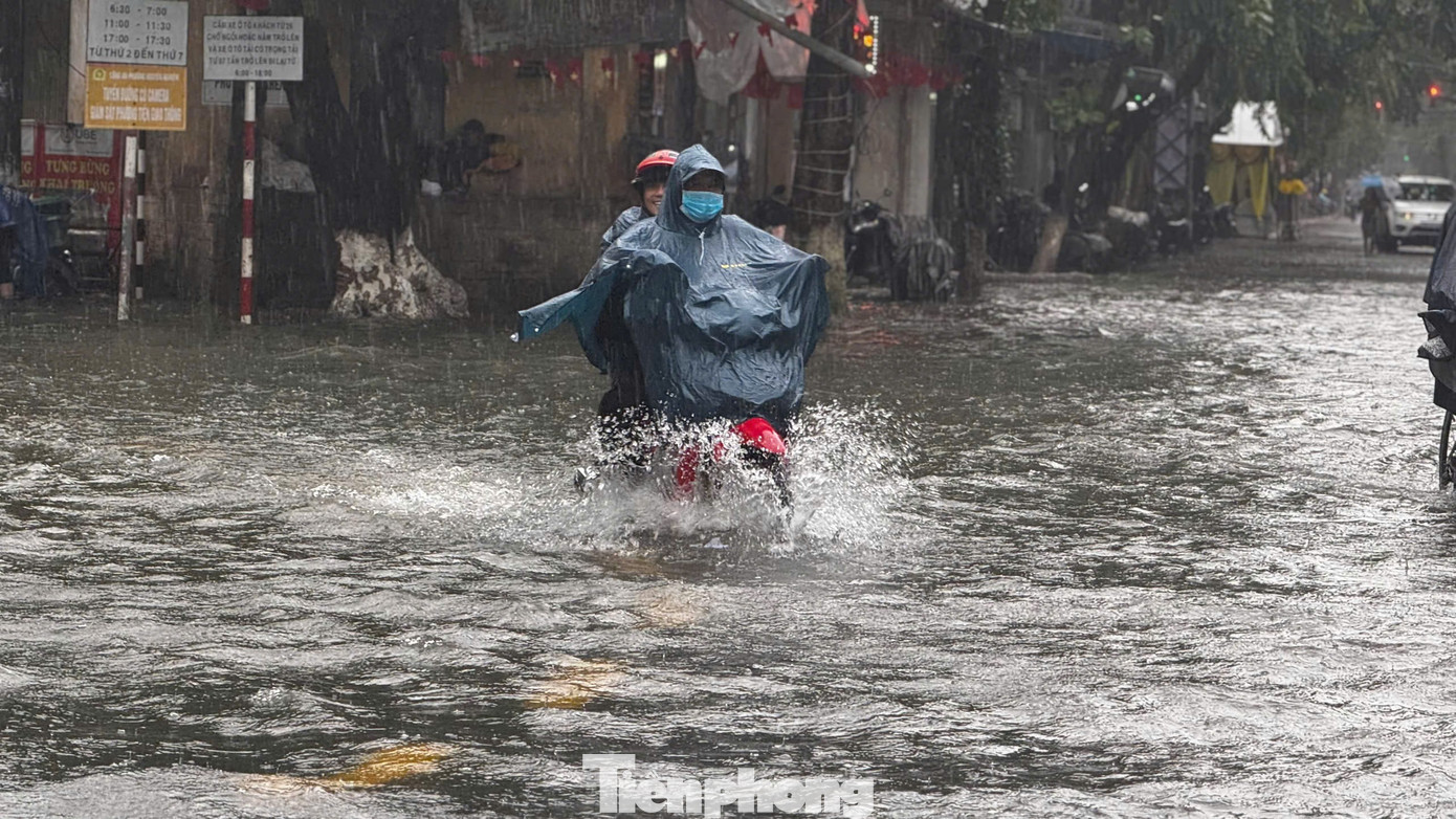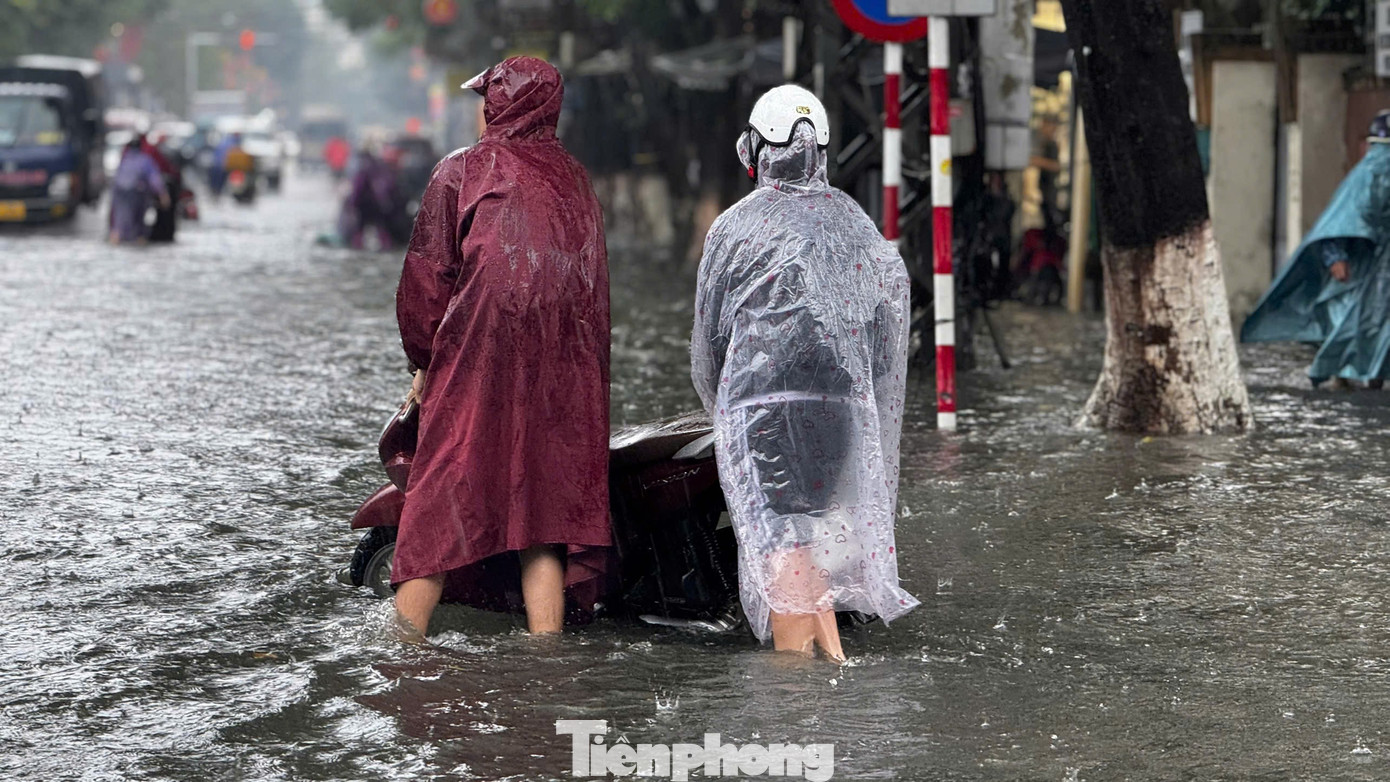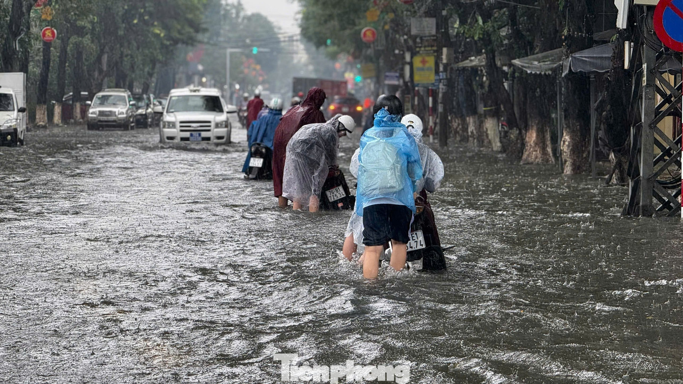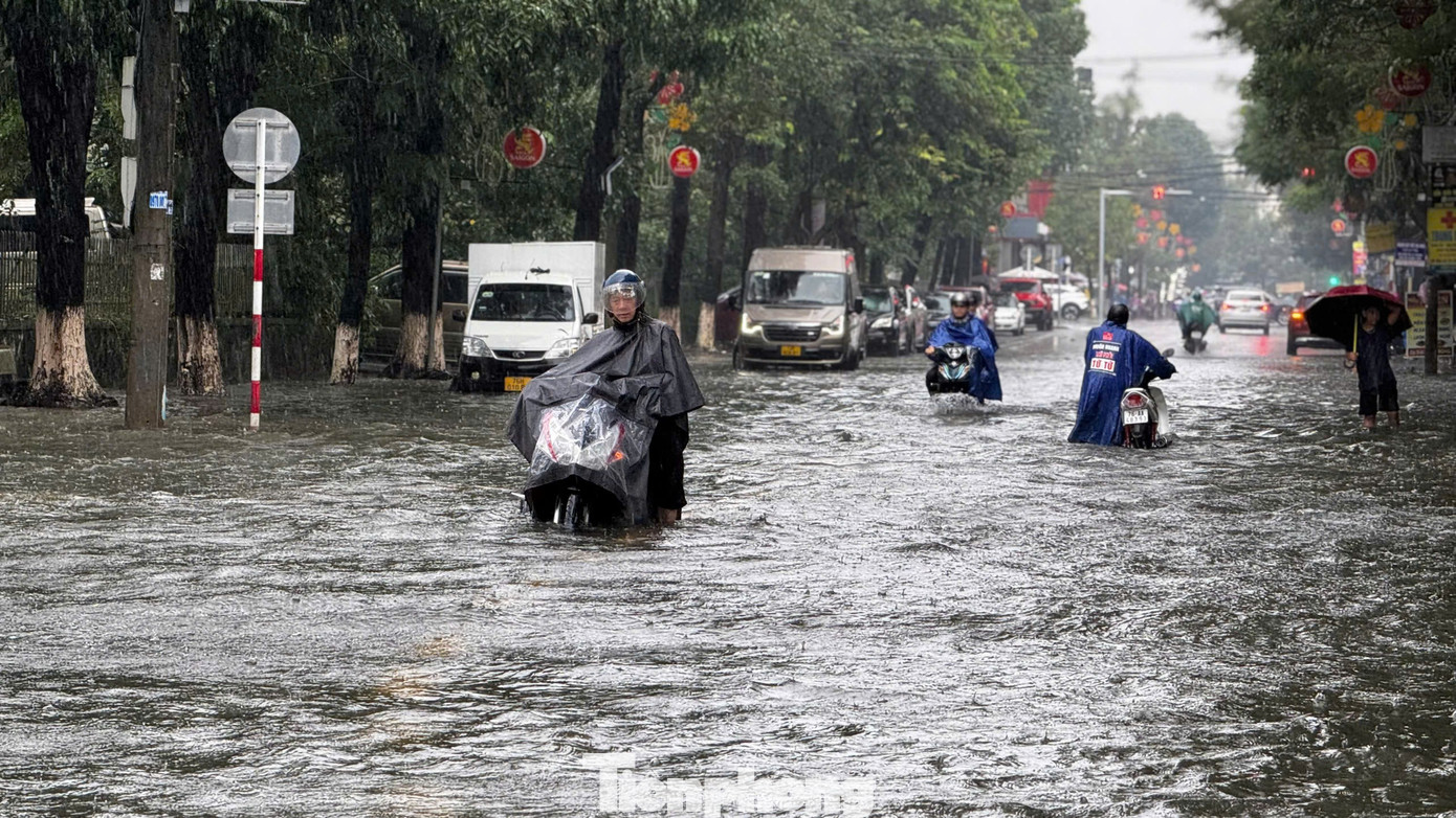 Tuyến đường Phan Bội Châu giao với Trần Hưng Đạo nhiều đoạn nước ngập sâu lút đầu gối. Nhiều phương tiện bị chết máy giữa đường.
