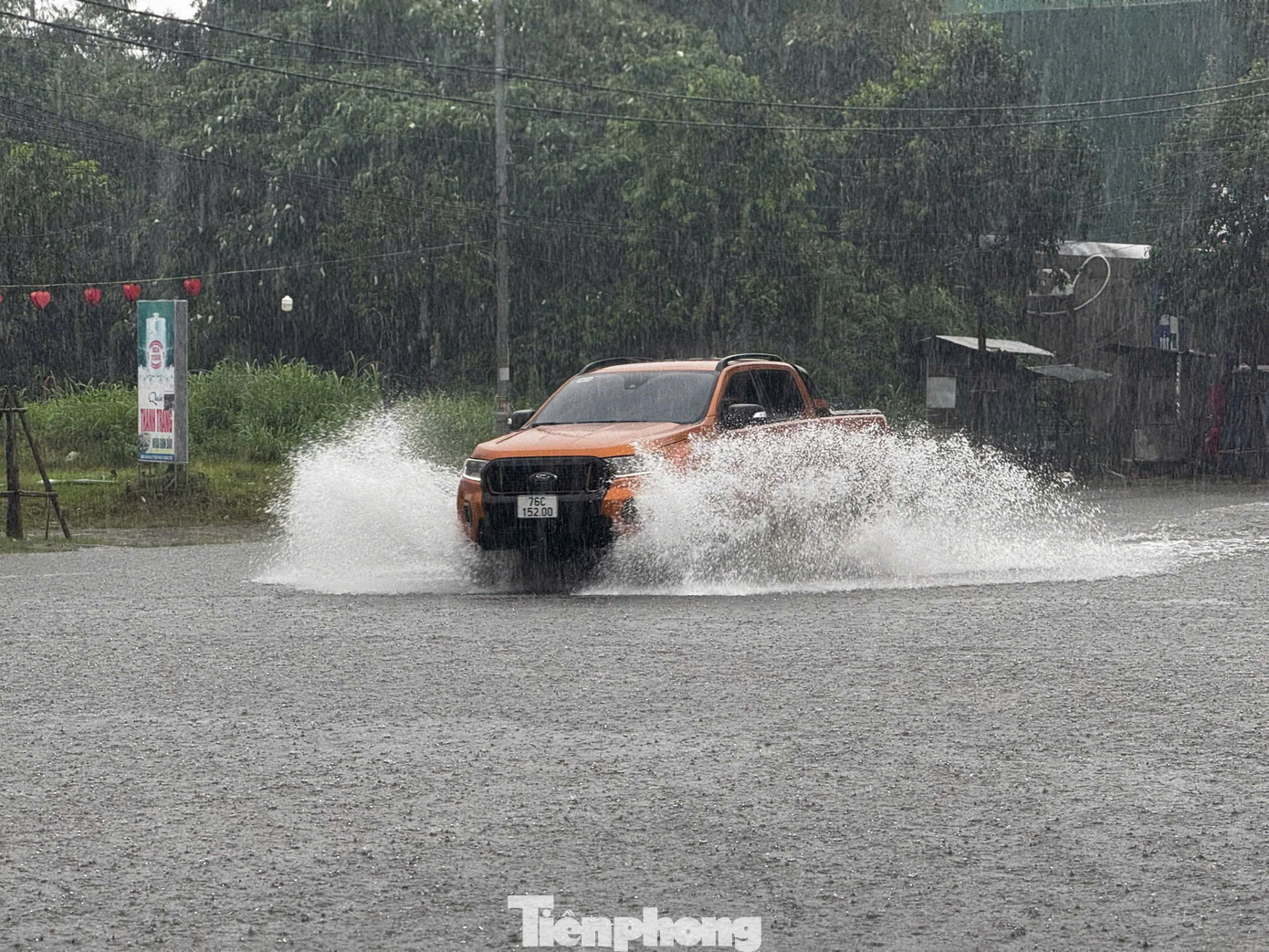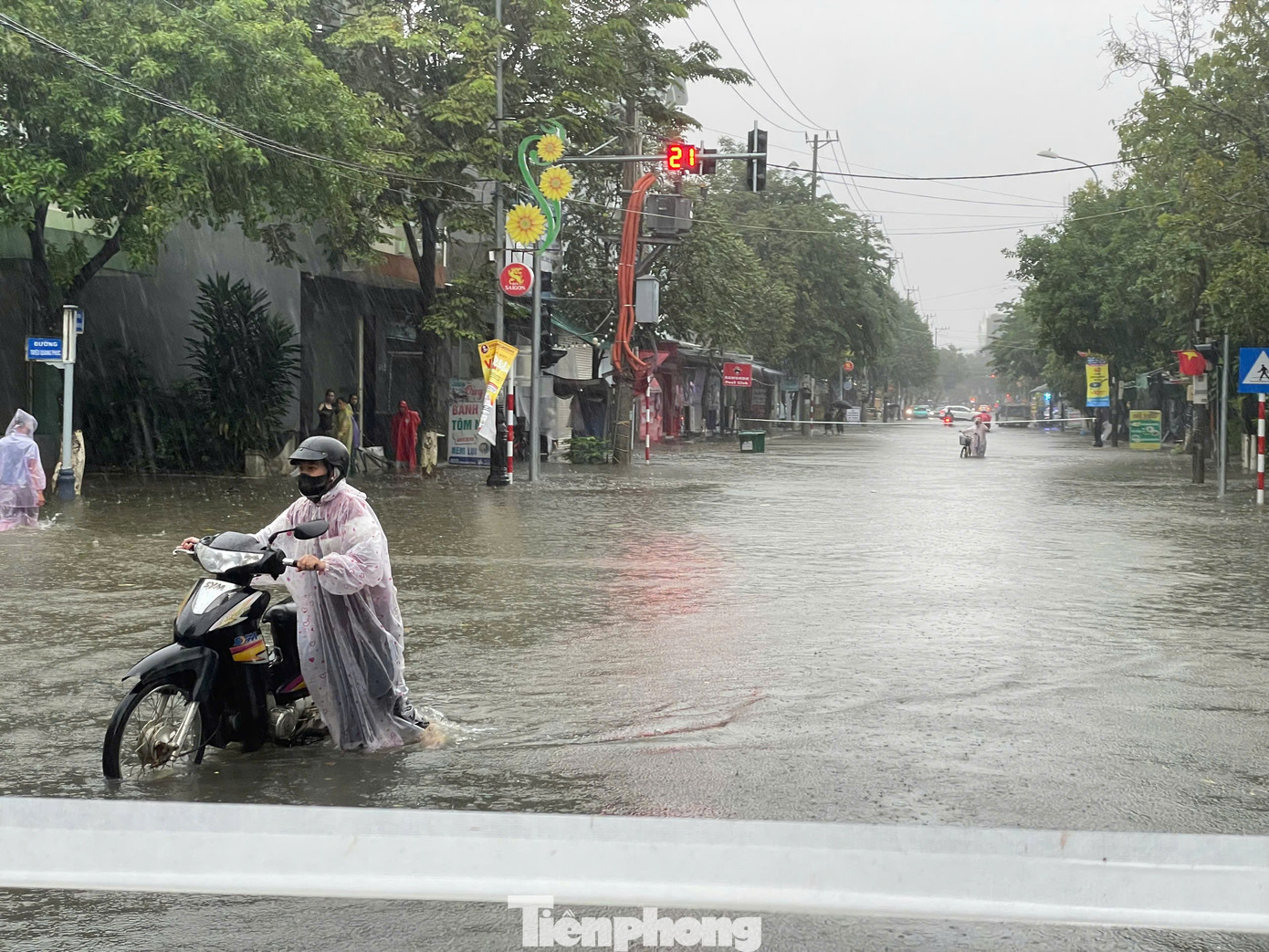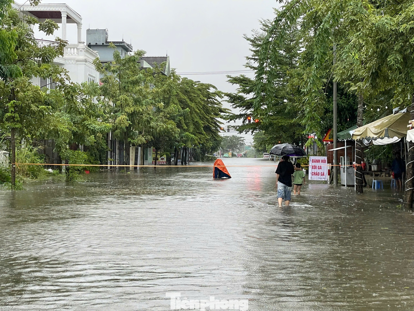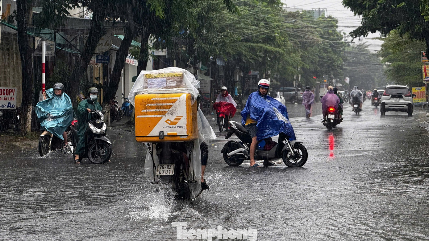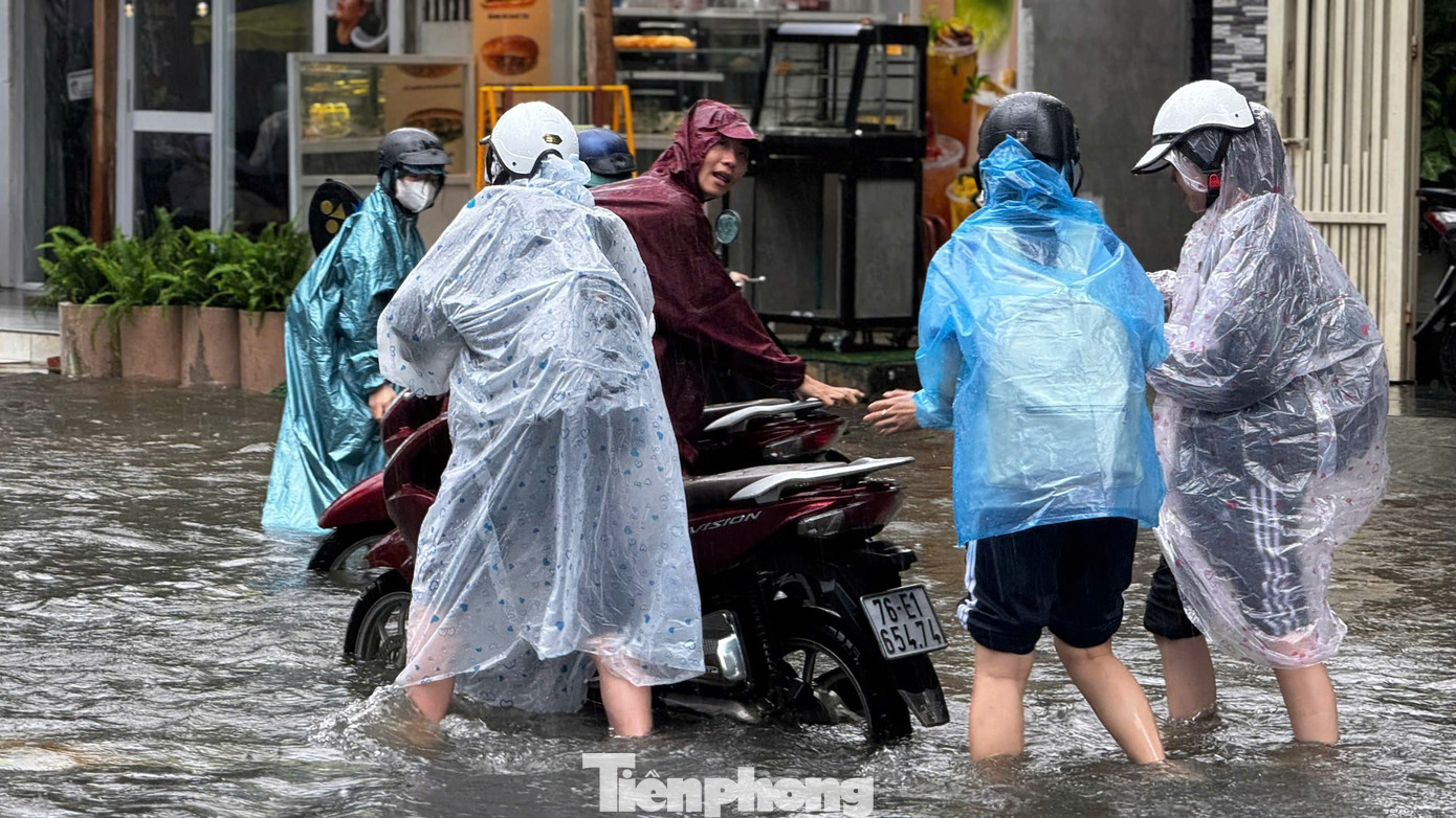 Những cơn mưa lớn và kéo dài khiến nhiều tuyến đường ở đô thị trung tâm tỉnh Quảng Ngãi bị ngập sâu, có nhiều đoạn ngập sâu nửa mét, chính quyền đã phải giăng dây cấm phương tiện lưu thông.