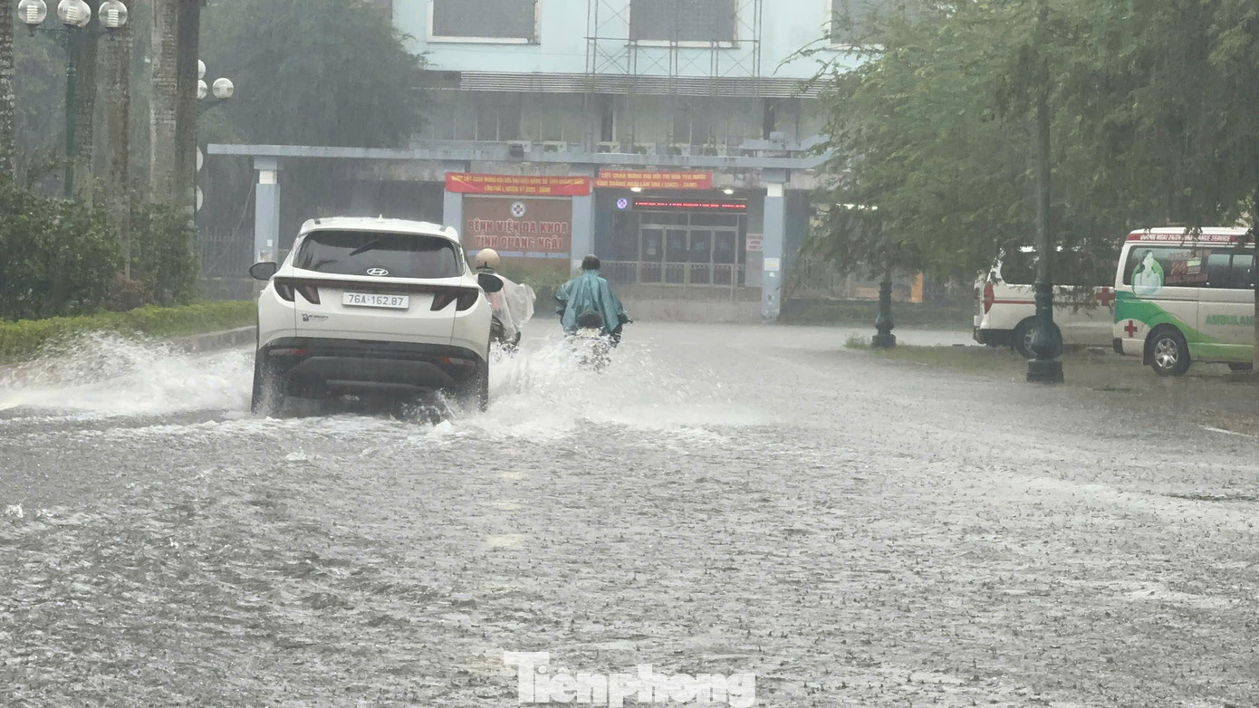 Trước Bệnh viện Đa khoa tỉnh Quảng Ngãi nước ngập sâu.