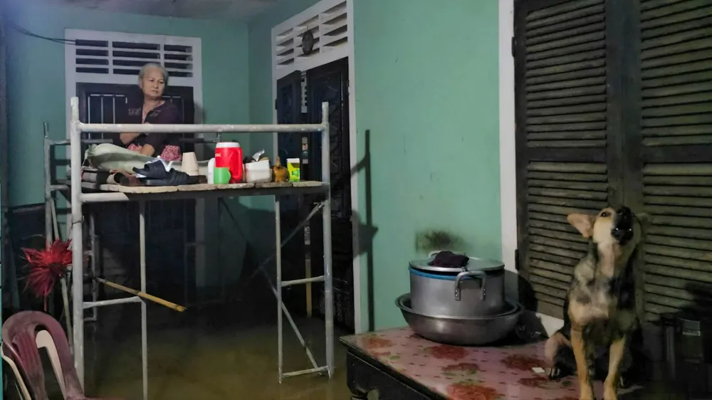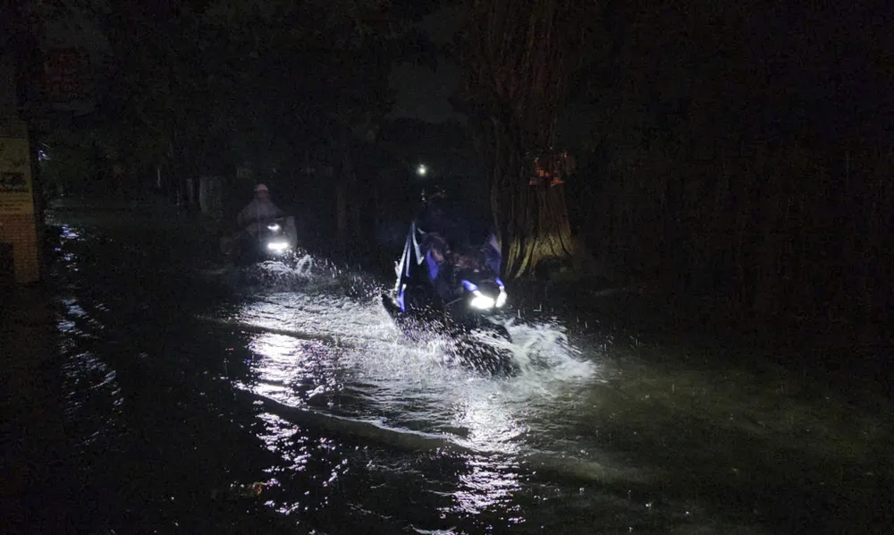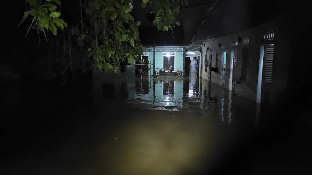 Mưa lớn kéo dài từ tối 23 đến sáng 24-10, khiến nhiều tuyến đường và khu dân cư tại TP Huế ngập sâu. Nhiều người dân, sinh viên thức đêm để "cõng" tài sản chạy lũ.