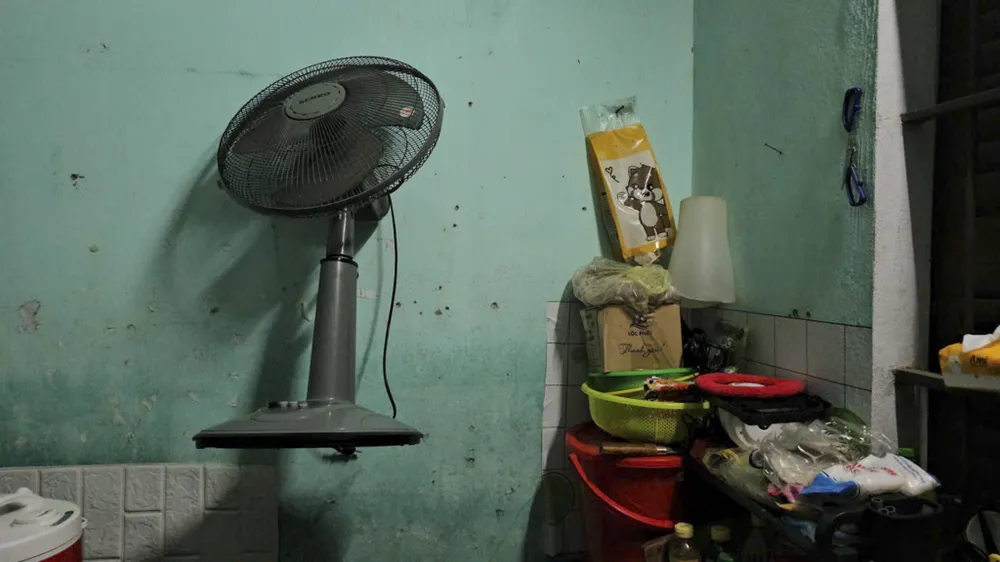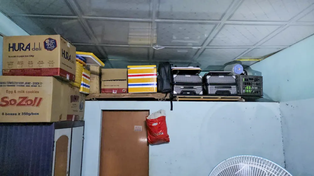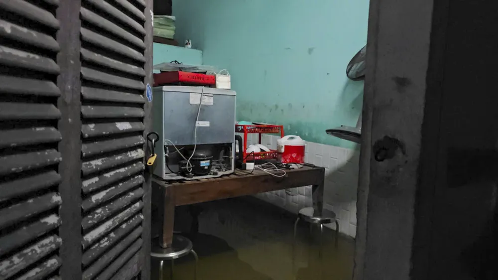 Nhiều đồ điện được treo ở vị trí cao nhằm giảm thiểu hư hỏng nếu nước lũ tiếp tục dâng cao.