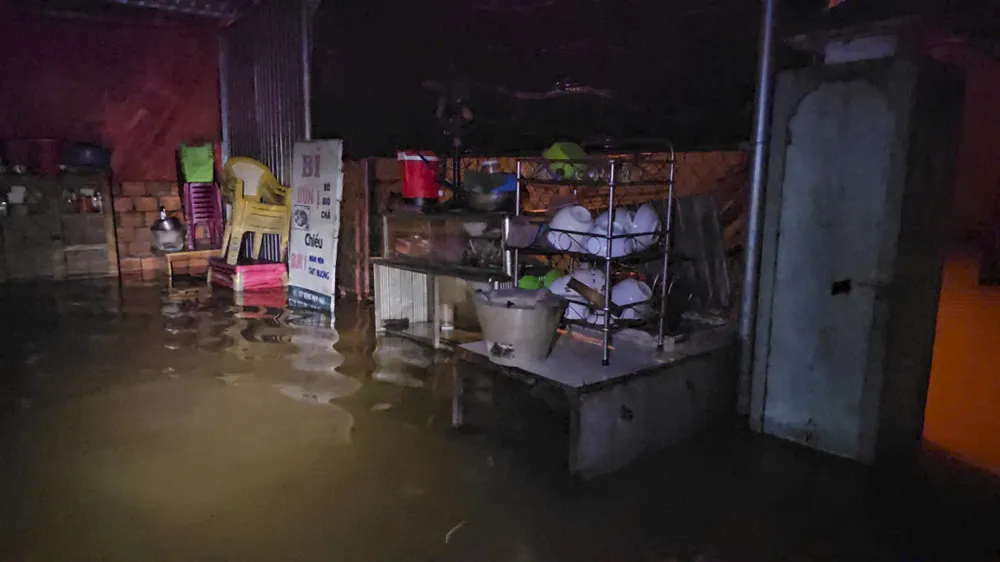 Nhiều nhà dân, khu nhà trọ sinh viên bị ngập sâu trong nước lũ.