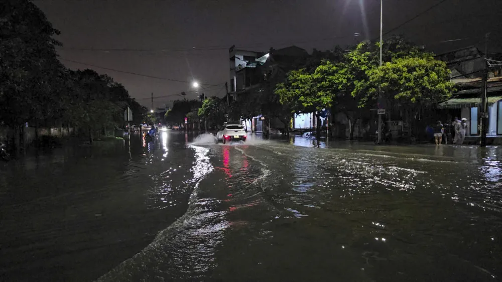 Lớn lớn dồn dập khiến nước dâng cao, gây ngập nhiều tuyến đường, khu dân cư ở TP Huế.