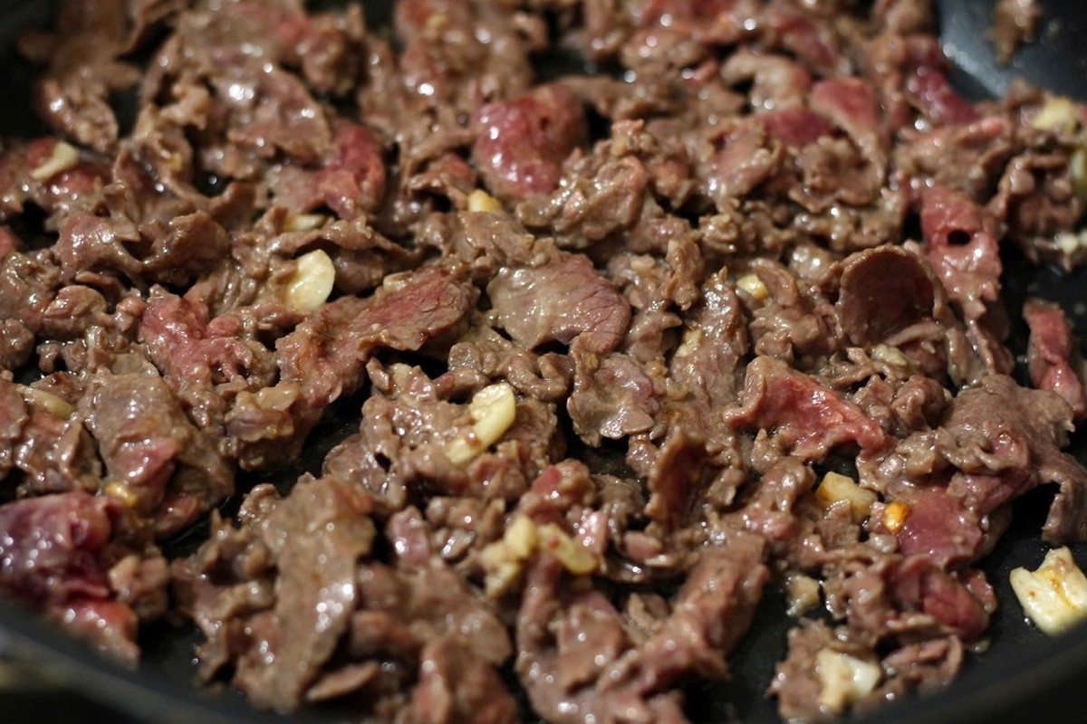 Khi chế biến, thịt bò được xào nhanh trên lửa lớn đến khi chín tái rồi múc ra. Ảnh minh họa