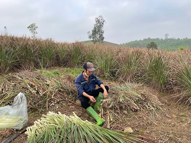 Hằng ngày, anh Trương Văn Minh vẫn lên đồi nhặt cỏ và thu hoạch sả.