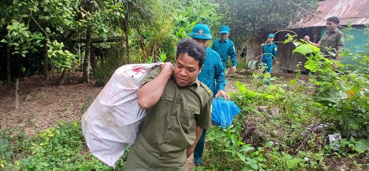 UBND xã Nam Giang huy động lực lượng di dời 6 hộ dân khỏi vùng có nguy cơ sạt lở. Ảnh: Đà Thành