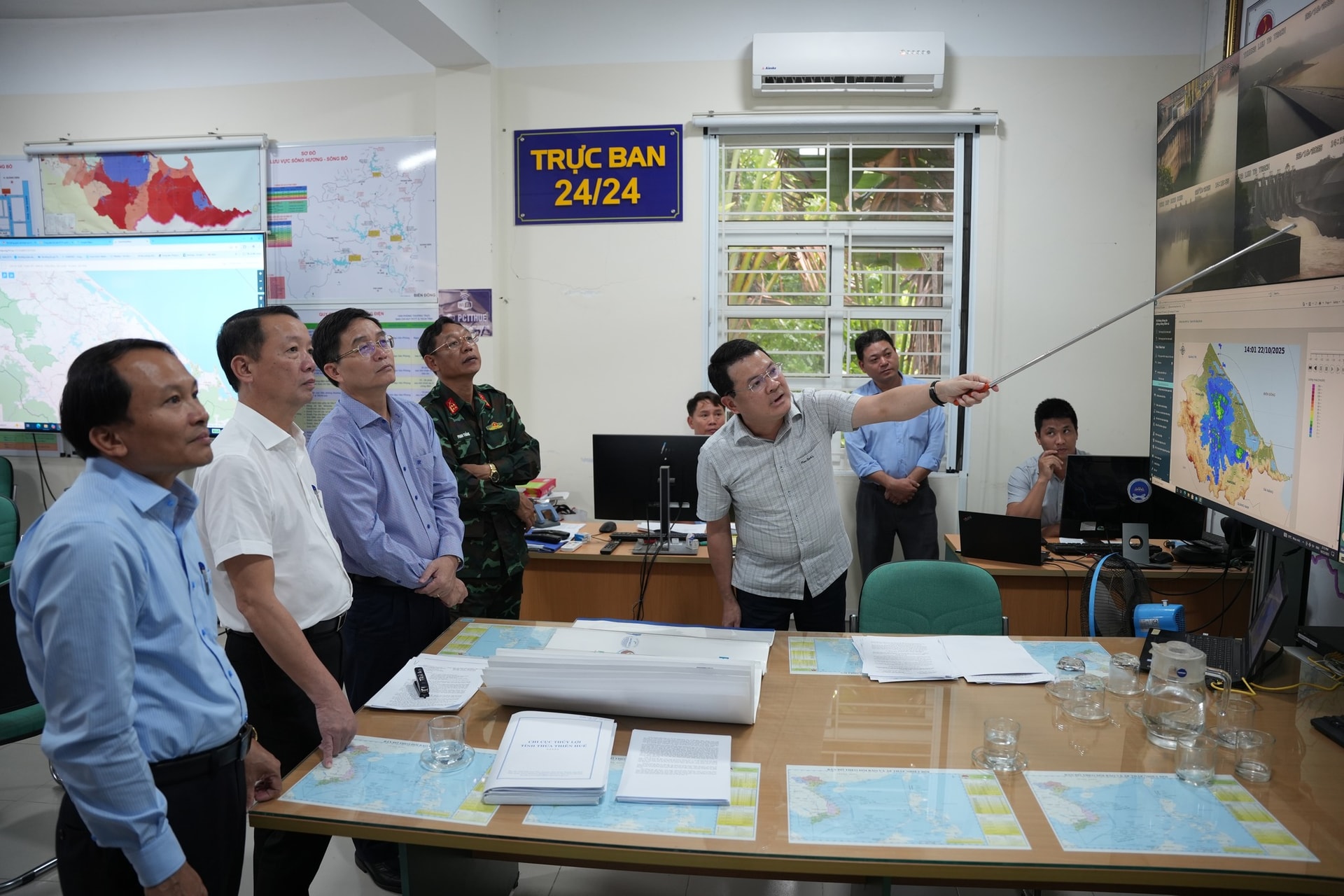 Lãnh đạo thành phố Huế kiểm tra các phương án chống lụt bão. Ảnh: Thành Huế