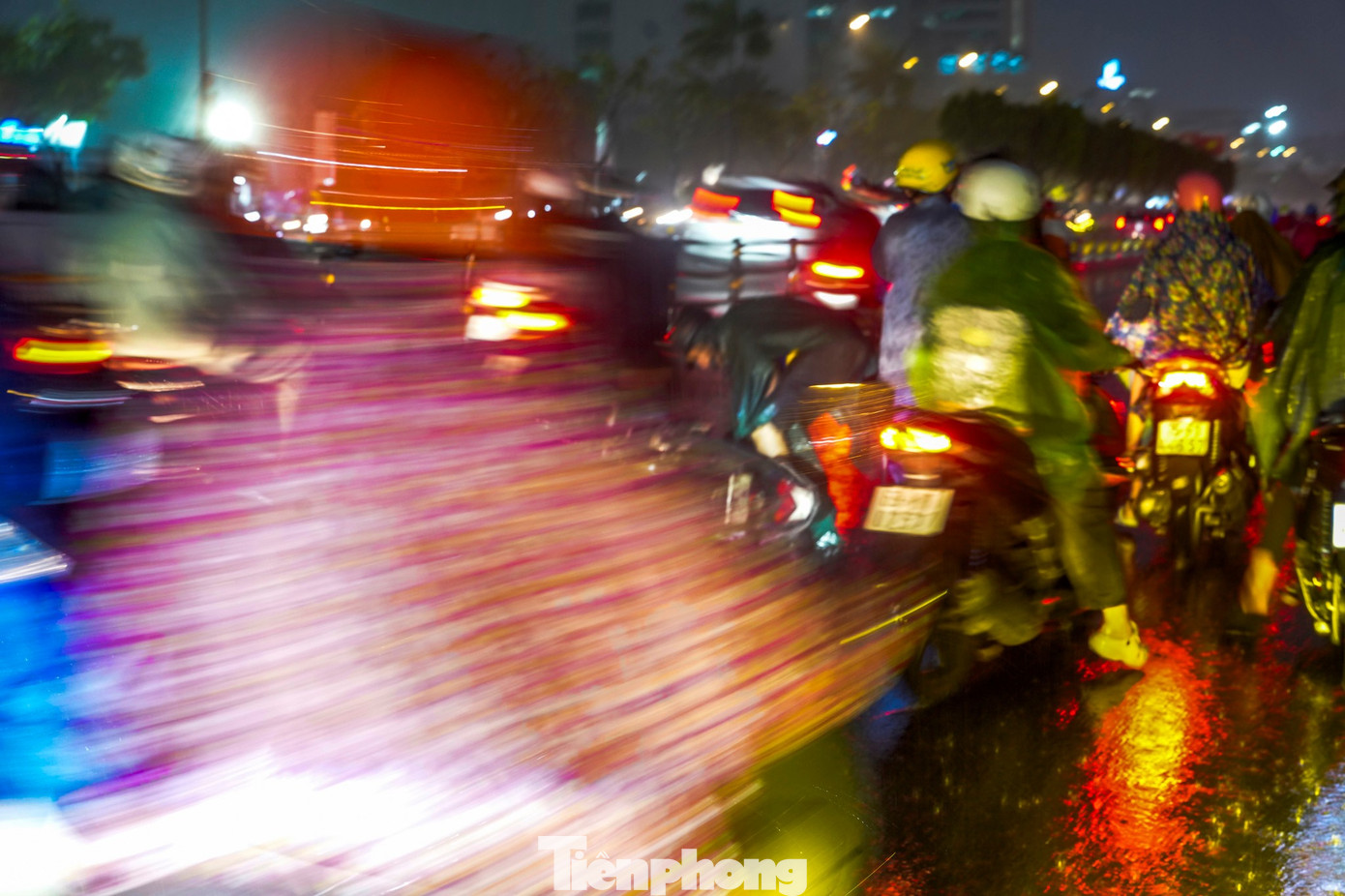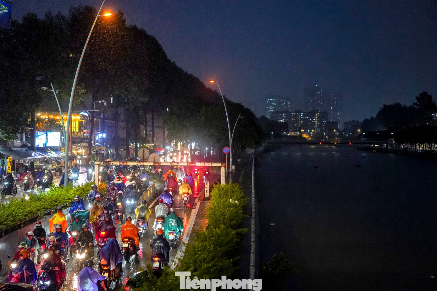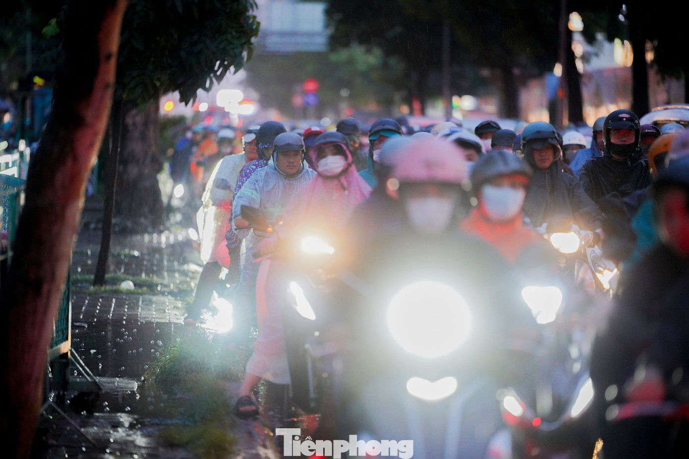 Mưa vào giờ cao điểm và kéo dài khiến giao thông càng ùn tắc.