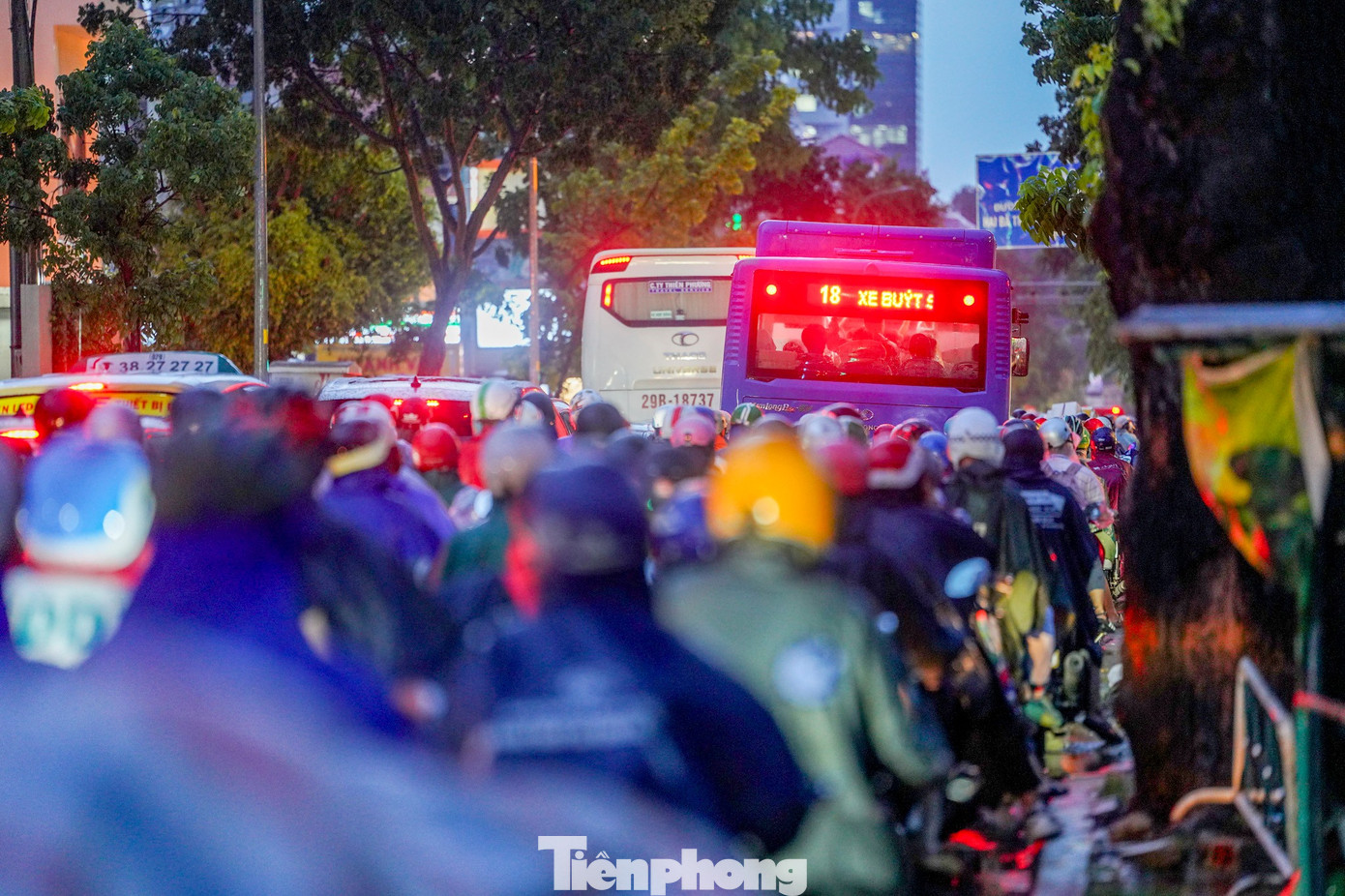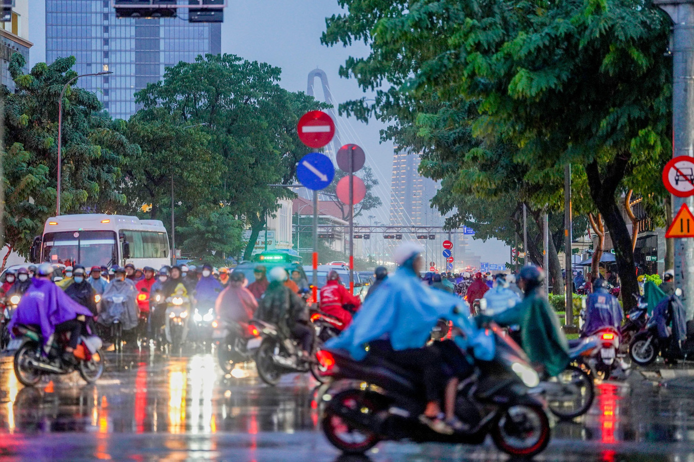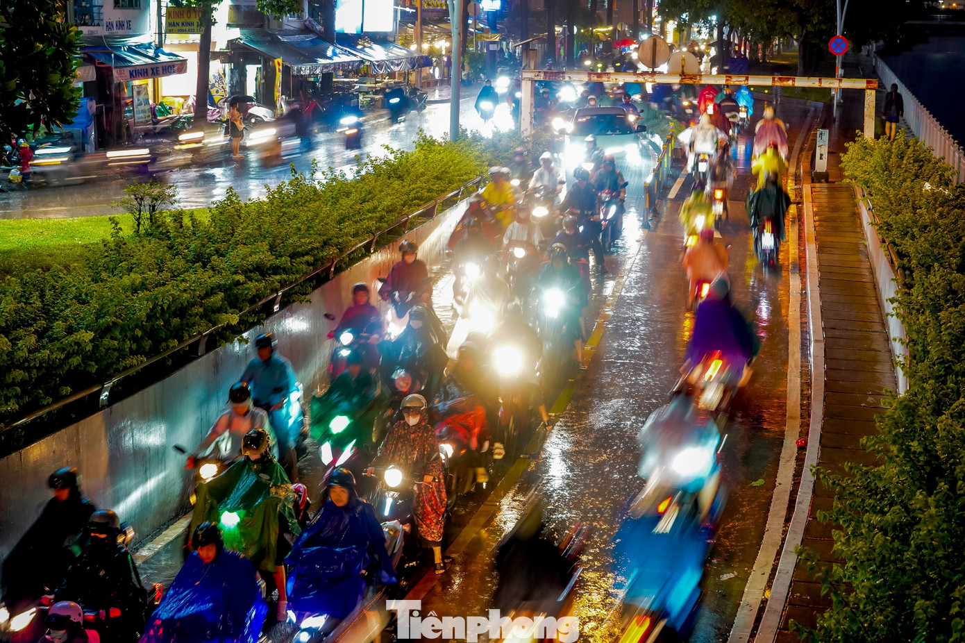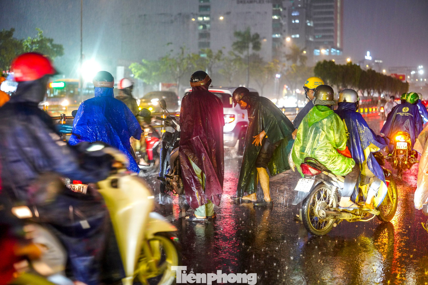 Mưa vào giờ cao điểm và kéo dài khiến giao thông càng ùn tắc.