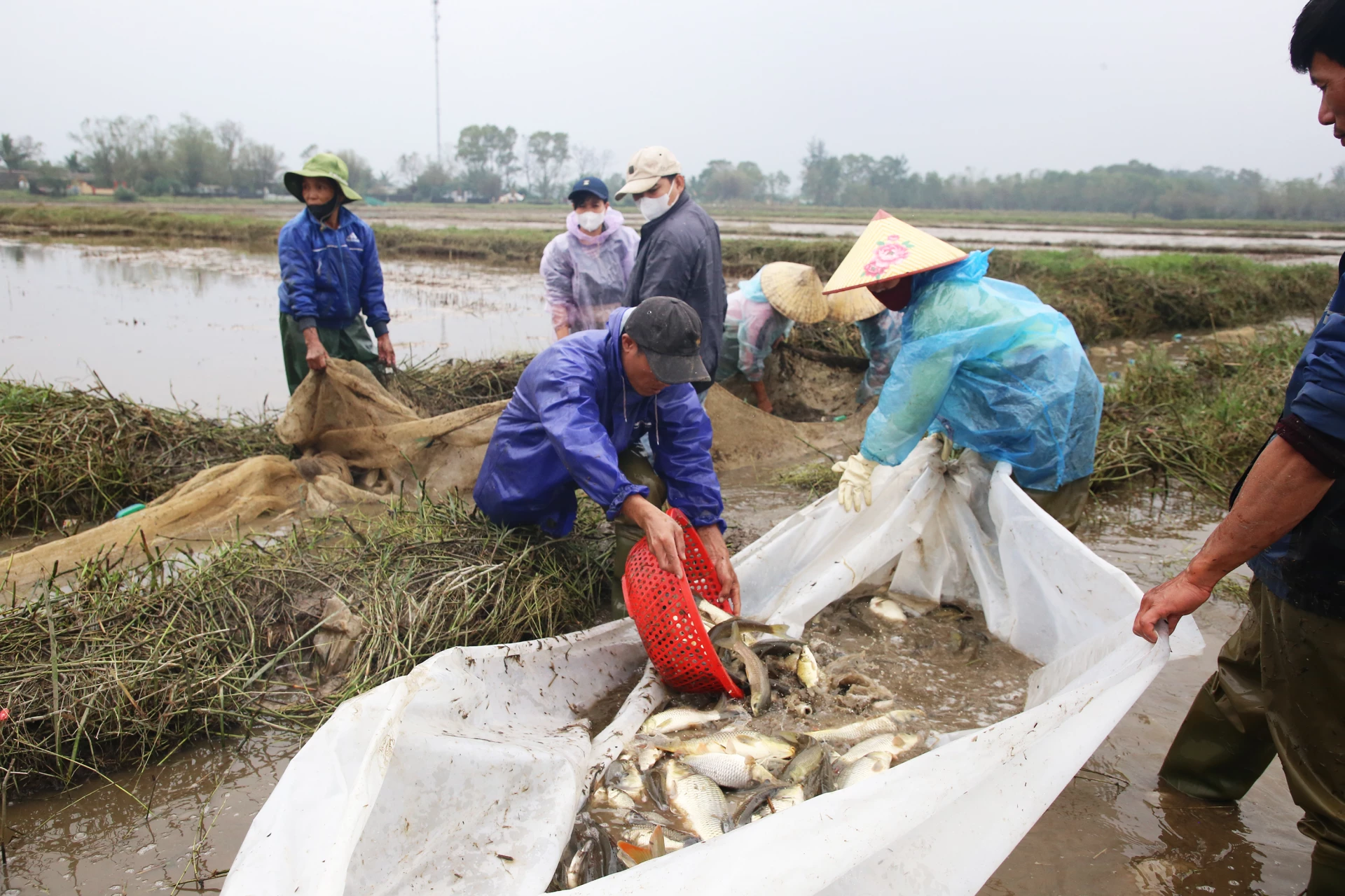 Xã Tân Mỹ là địa phương có truyền thống hàng chục năm nuôi cá đồng mùa nước nổi. Cánh đồng các thôn Tân Hòa, Tân Hạ, Tân Ninh… rộng hơn 100ha canh tác lúa được 40 hộ dân đấu thầu nuôi cá. Những ngày này, nông dân ở đây đã tháo nước, tập trung thu hoạch cá, trả đất lại cho người dân canh tác vụ lúa đông-xuân.