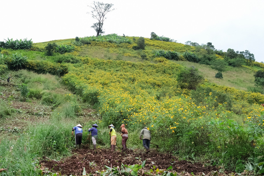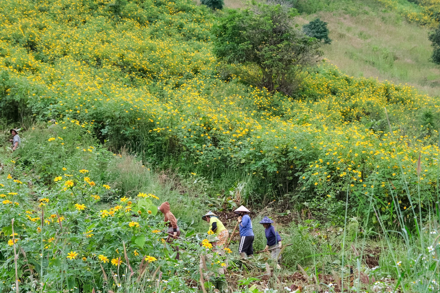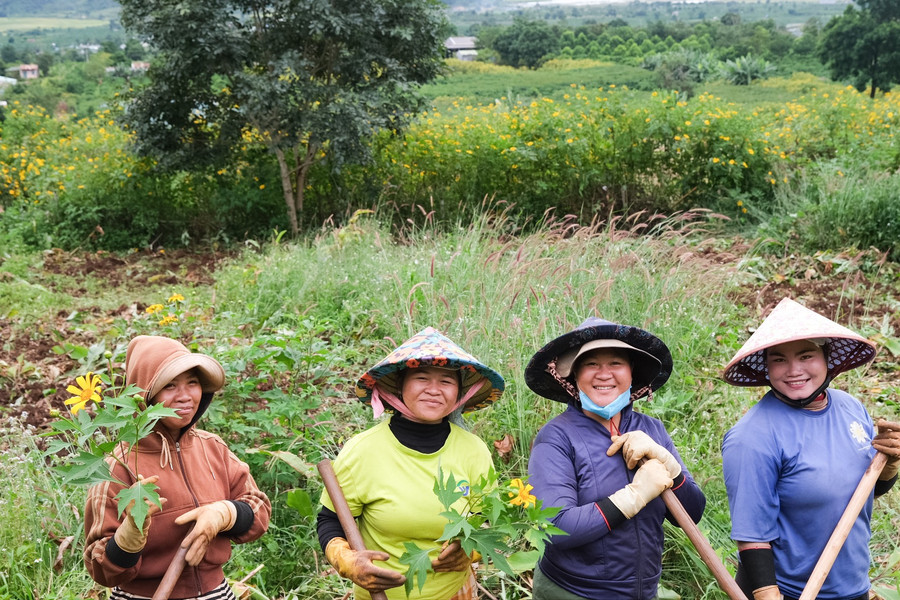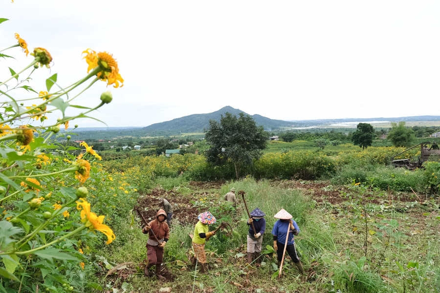 Mồ hôi lấm tấm trên trán, đất đỏ bám dính những đôi chân trần, tiếng nói cười rộn rã vang vọng giữa sắc vàng bạt ngàn của dã quỳ đang nở rộ.