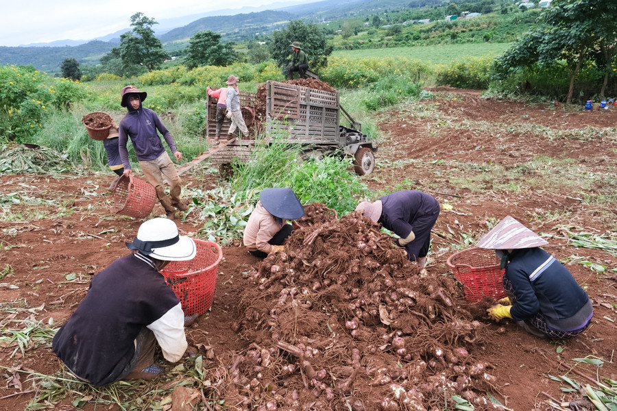 Nông dân Chư Đang Ya bước vào mùa thu hoạch dong riềng. Ảnh: Minh Châu