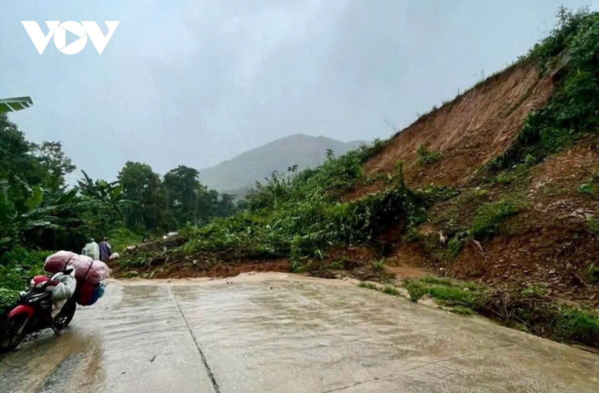 Sạt lở Quốc lộ 24C qua xã Bắc Trà My, TP Đà Nẵng sạt lở tắc đường.