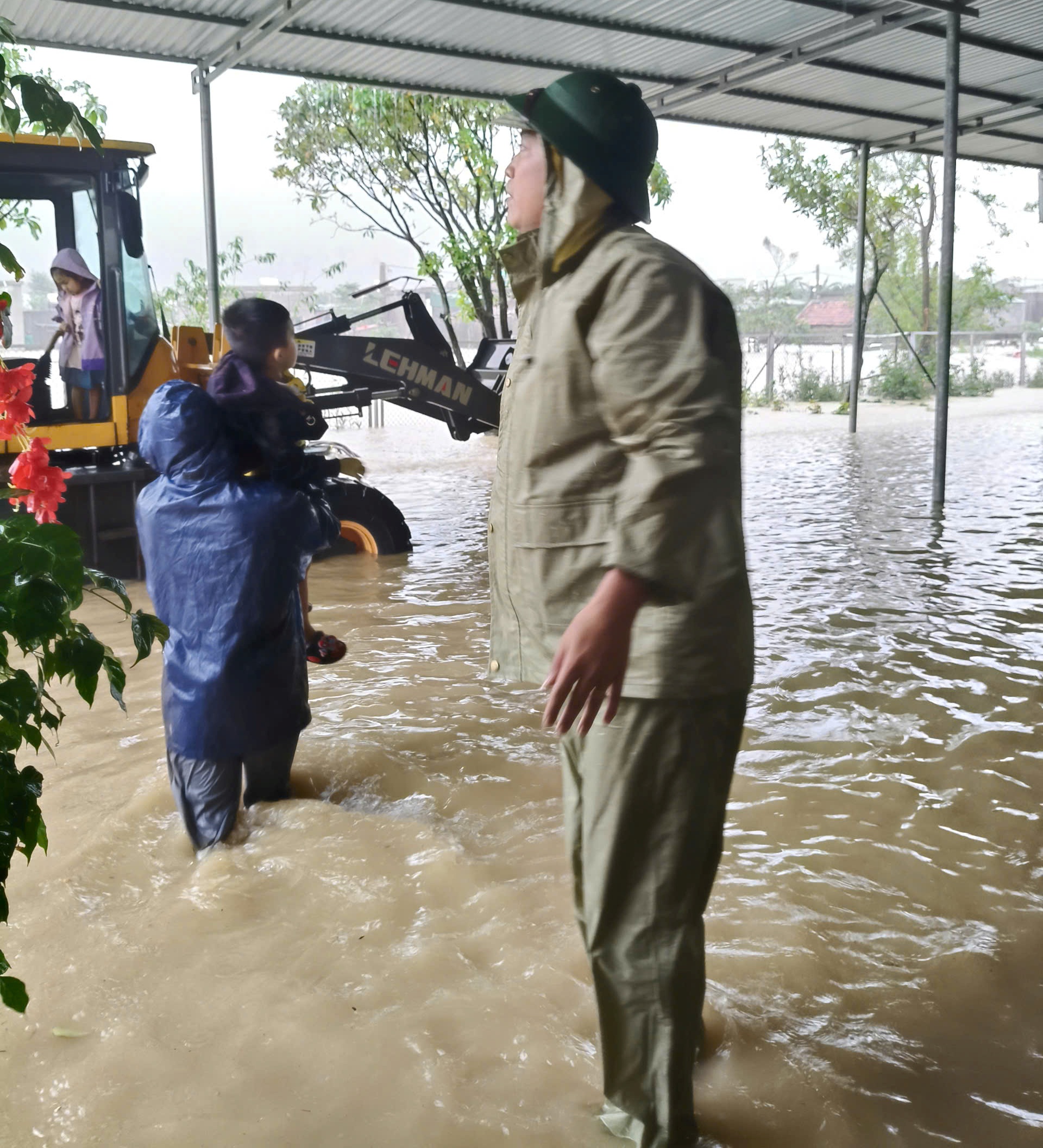 Đặc biệt, Trường Tiểu học Kỳ Thịnh - điểm trường ở khu vực Tây Yên (phường Vũng Áng), do nằm ở vùng trũng thấp nên đã bị ngập sâu. Lực lượng chức năng địa phương phối hợp với giáo viên, phụ huynh huy động nhiều phương tiện, trong đó có cả xe tải, để đưa đón học sinh về nhà an toàn.