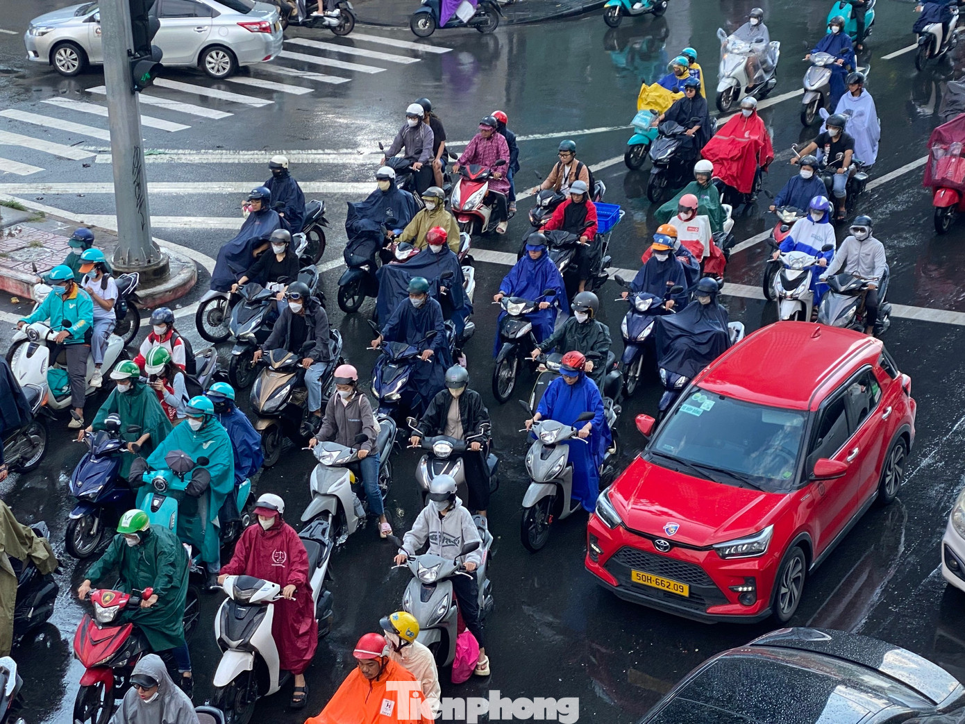 Khoảng 7h30 sáng 3/10, mưa lớn xuất hiện tại nhiều nơi ở trung tâm TPHCM đúng vào thời gian cao điểm. Ảnh: Hữu Huy