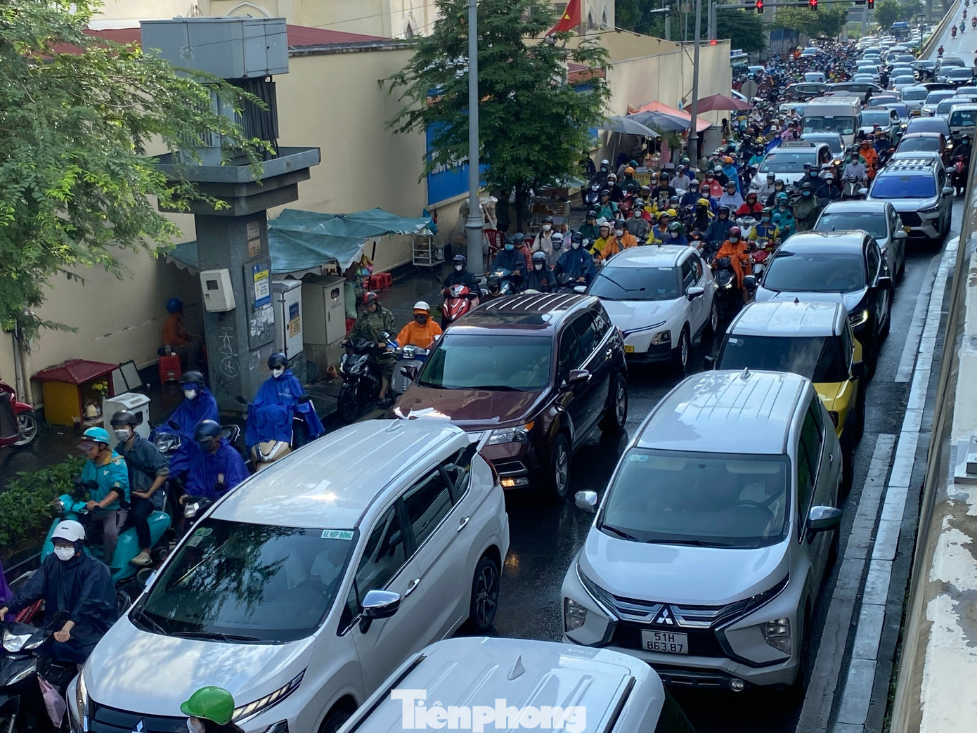 Clip: Mưa từ sáng sớm, người dân nhích từng chút vào trung tâm TPHCM.