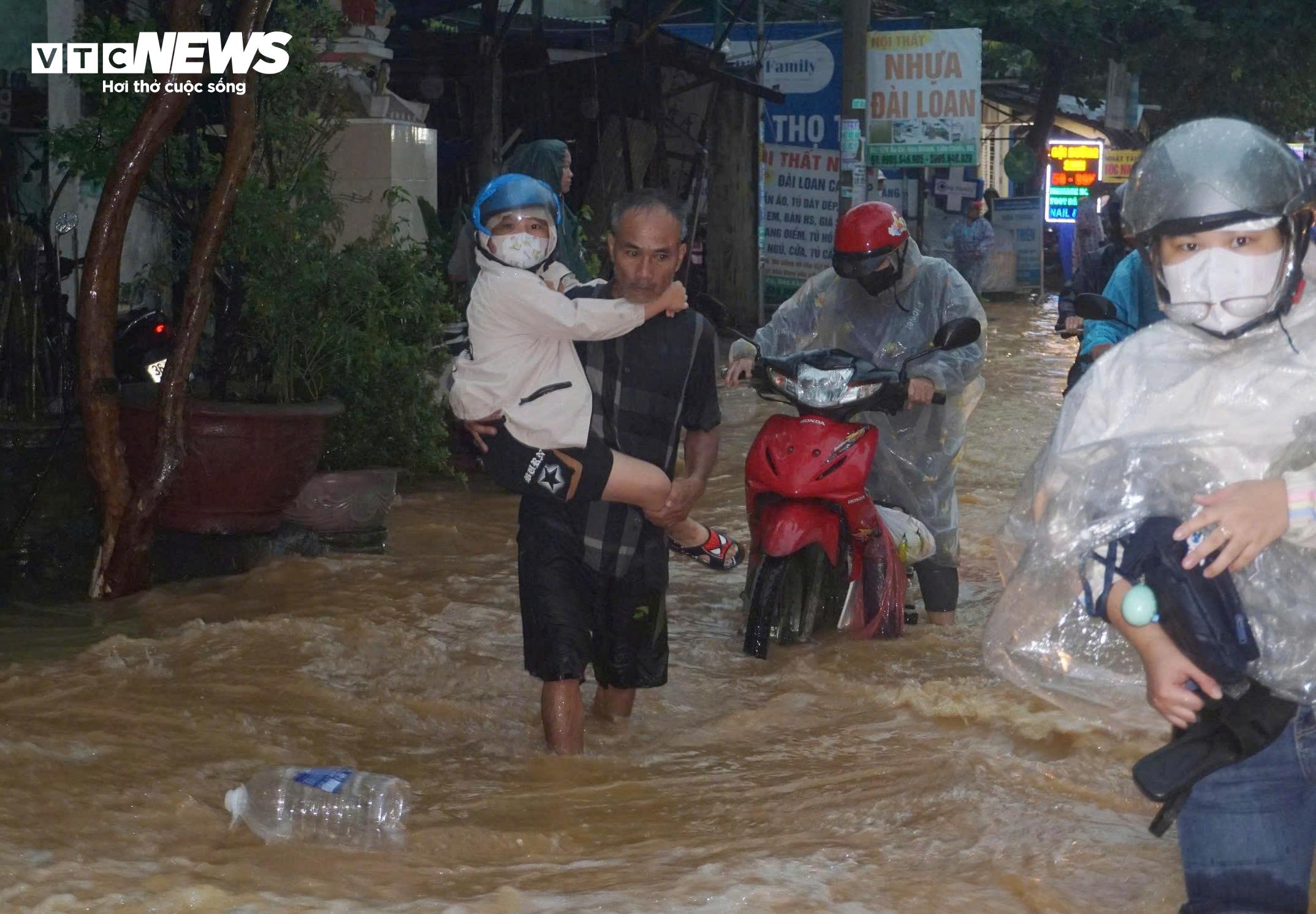 Ngập sâu khiến khu vực này ùn tắc kéo dài, nhiều người phải bỏ xe, cõng trẻ em hoặc kê đồ đạc lên cao. Lực lượng chức năng phường Liên Chiểu có mặt từ sớm hỗ trợ người dân di chuyển an toàn, điều tiết giao thông và khơi thông các điểm thoát nước.