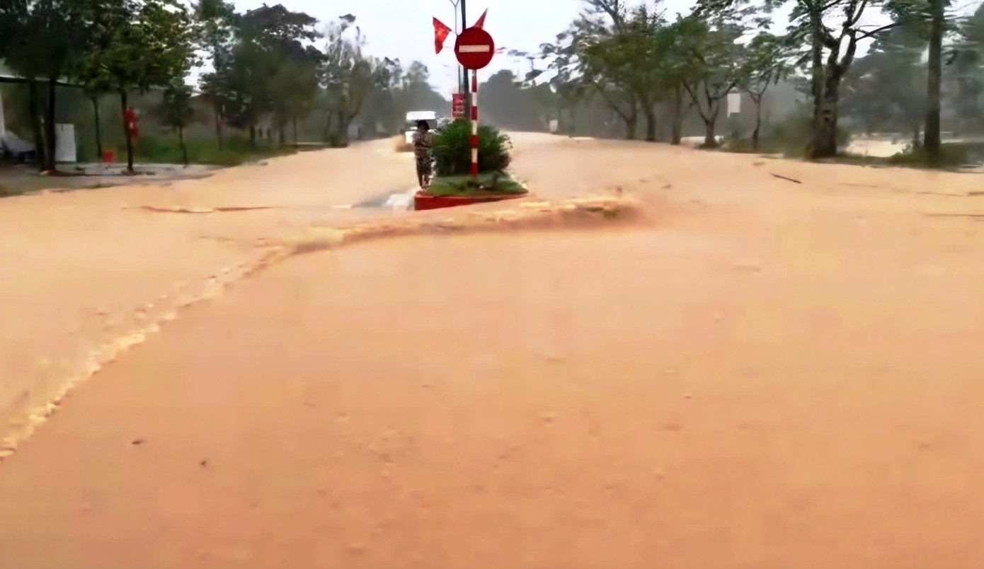 Nhiều người lưu thông qua huyện miền núi A Lưới (cũ) phản ánh, mưa rất to từ sáng đến chiều 16/11 khiến cho một số đoạn trên đường Hồ Chí Minh xuất hiện những dòng nước chảy xiết như thác lũ.