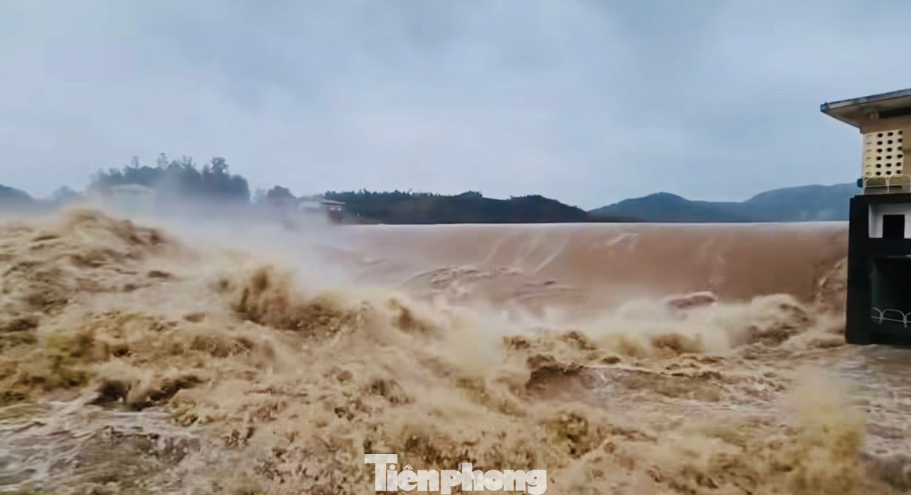 Nước lũ tràn về đập Thạch Nham (xã Sơn Hạ, tỉnh Quảng Ngãi).