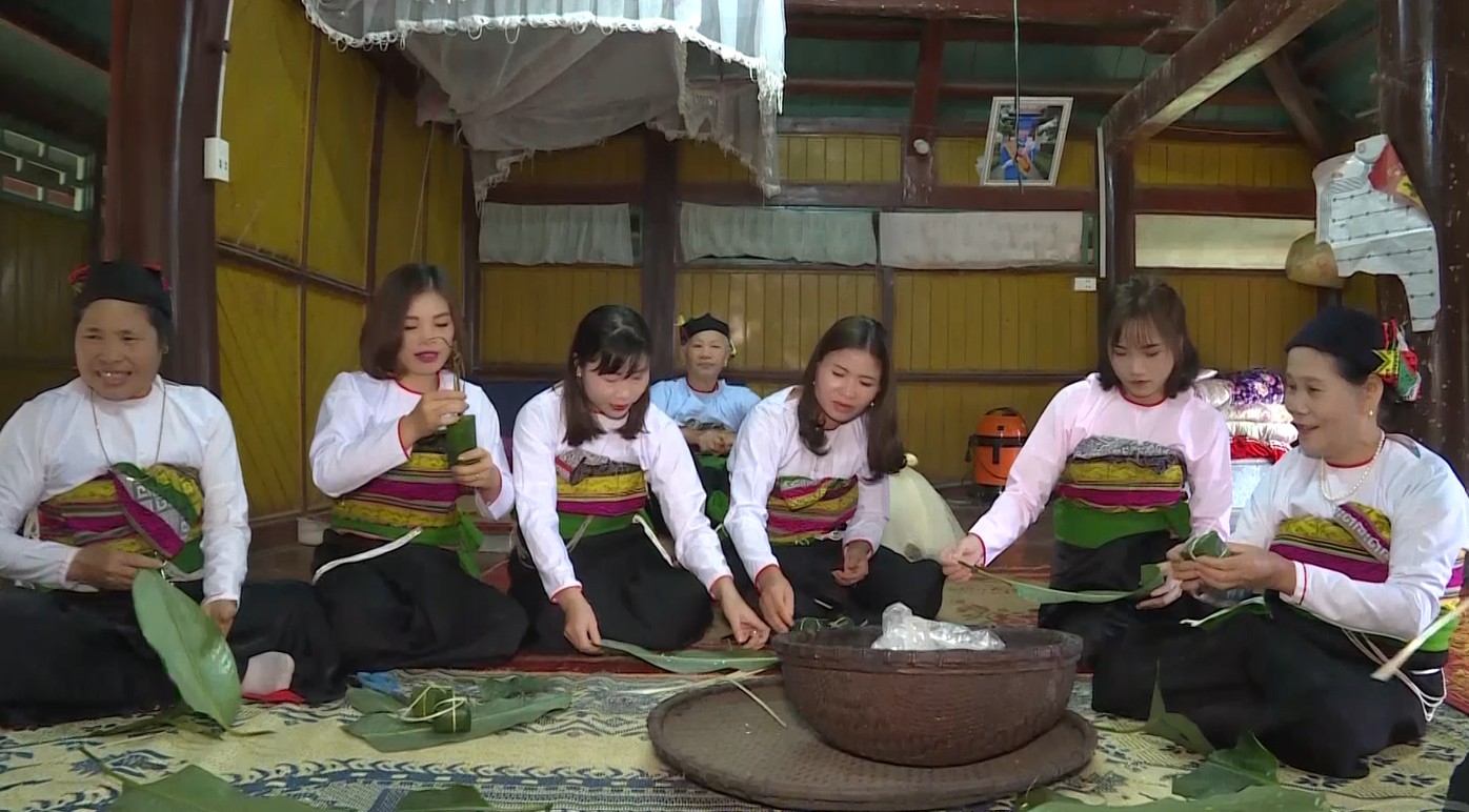 Phụ nữ Mường tổ chức gói bánh chưng để gia đình tết ăn và làm quà khi đến nhà người thân chơi Tết.