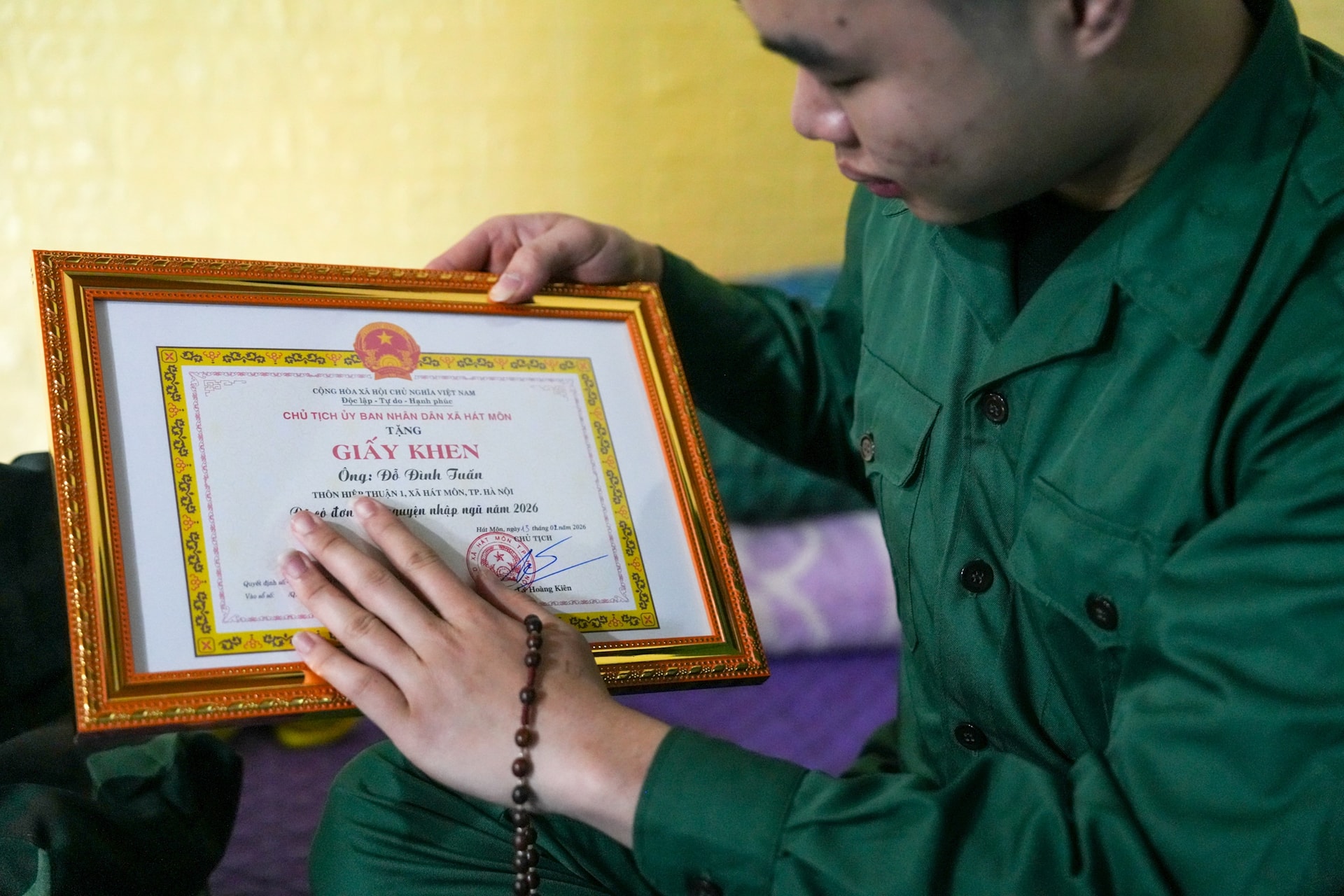 Bản tính hướng nội khiến Tuấn không quá nổi bật giữa đám đông. Cậu ít nói, sống nội tâm, nhưng bên trong là một suy nghĩ chín chắn hơn tuổi. Là con của gia đình Công giáo, Tuấn được dạy về sự hy sinh, về tinh thần trách nhiệm và lòng biết ơn. Có lẽ chính những điều đó đã âm thầm nuôi dưỡng trong cậu một ước mơ khác là được khoác lên mình màu áo lính. Đợt giao nhận quân mùa xuân năm 2026, ngay sau khi địa phương có thông báo tuyển quân, Tuấn là một trong những thanh niên đầu tiên hăng hái viết đơn tình nguyện thực hiện nghĩa vụ quân sự.