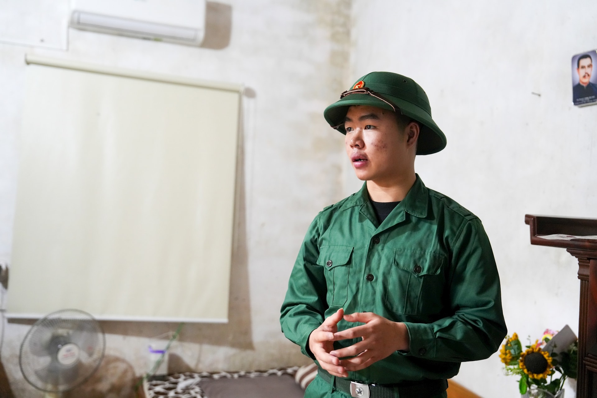 Tuấn kể, từ nhỏ, qua chiếc tivi nhỏ trong nhà, cậu thường xem những bộ phim tư liệu lịch sử về chiến tranh, về hình ảnh người lính Cụ Hồ. “Nhìn các chú bộ đội hành quân, sống kỷ luật, sẵn sàng hy sinh vì Tổ quốc, Em thấy rất tự hào. Từ khi đó, em đã ước một ngày được mặc bộ quân phục ấy”, Tuấn nói.