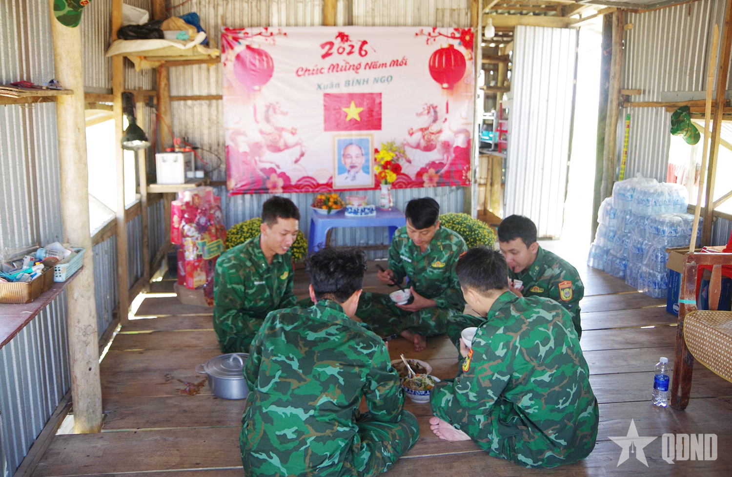 Bữa cơm đầu năm mới của cán bộ, chiến sĩ nơi chốt biên phòng.