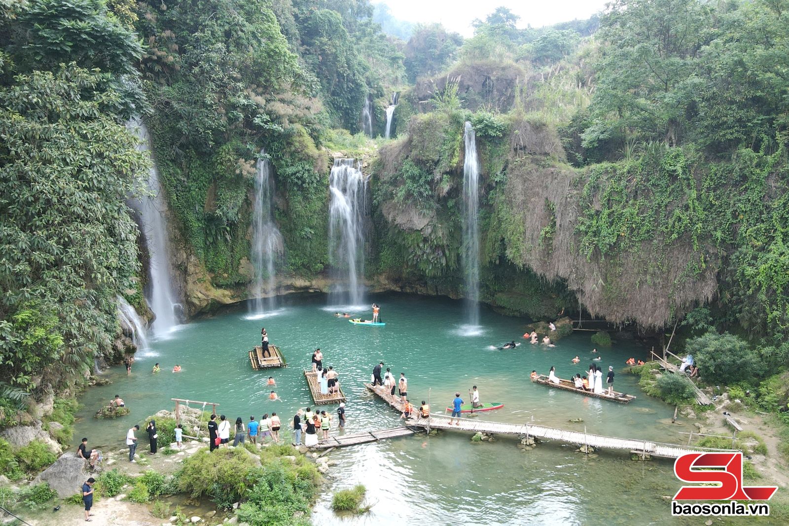 Cùng với tiềm năng phát triển nông nghiệp, xã Tô Múa còn sở hữu nhiều thắng cảnh đẹp, nổi bật là hệ thống thác nước tự nhiên kỳ vĩ, nguyên sơ gắn với những huyền tích mang đậm sắc màu văn hóa. Được trải nghiệm điểm du lịch thác 7 tầng tại bản Chiềng Lè đúng ngày tiết trời xuân, nắng đẹp, chúng tôi ngỡ ngàng trước tuyệt tác của thiên nhiên hùng vĩ, những tầng thác như những dải lụa mây đổ xuống hồ nước xanh như ngọc, khiến mọi du khách đều mê mẩn.