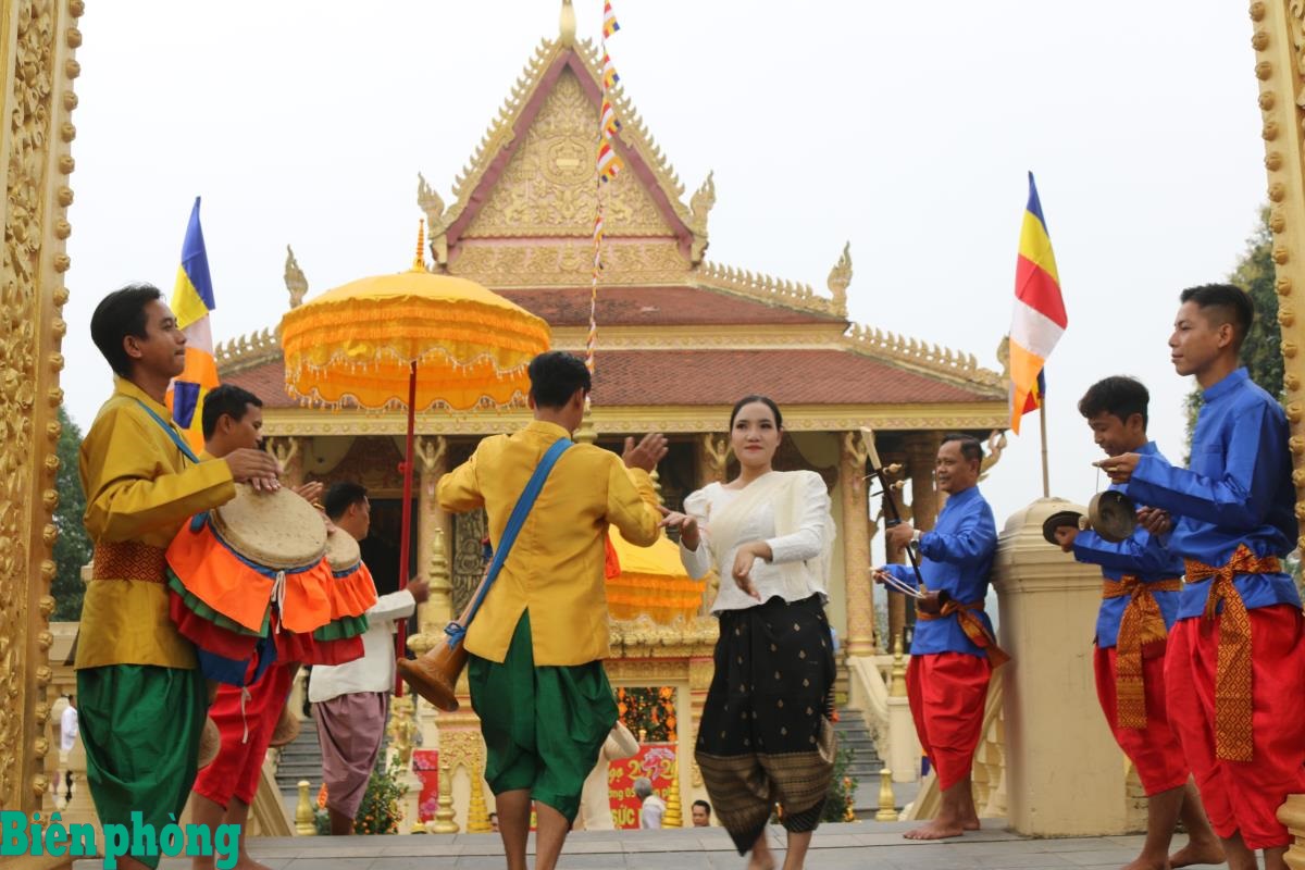 Đồng bào Khmer giới thiệu tới du khách những điệu múa truyền thống của dân tộc. Ảnh: Bích Nguyên