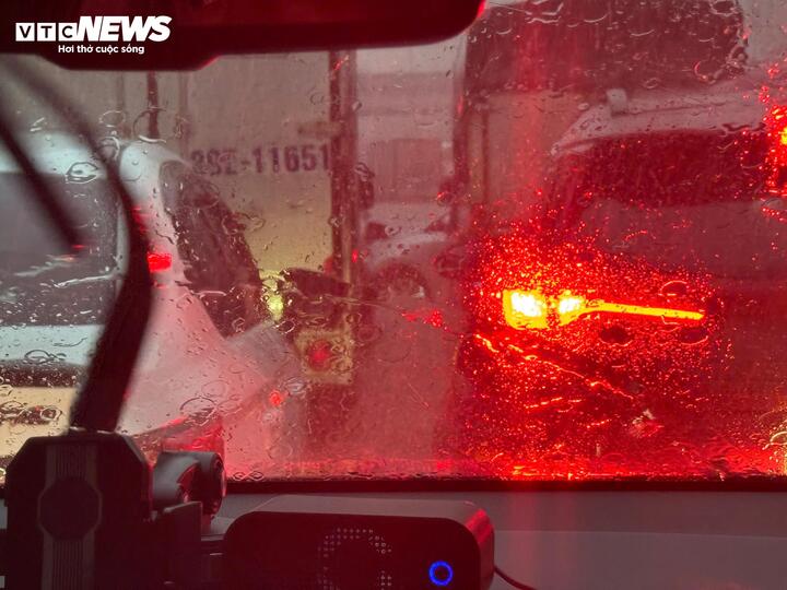 Một tài xế đang lái xe ở khu vực Đại lộ Thăng Long cho biết khu vực này nước dâng lên như lũ, đoạn đường gom đã tắc dài gần 10km.