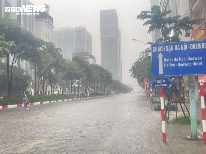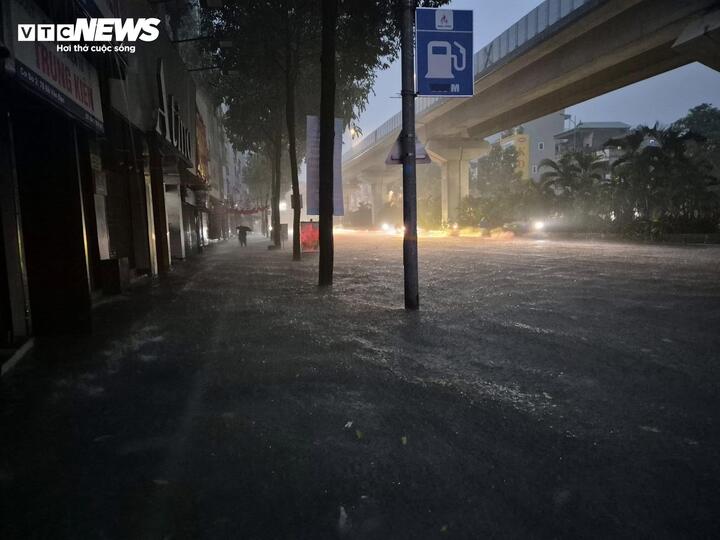 Từ 0h ngày 7/10, tại Hà Nội bắt đầu xuất hiện mưa lớn kèm sấm chớp. Mưa lớn kéo dài từ giữa đêm đến sáng cùng ngày khiến nhiều tuyến phố ngập sâu.